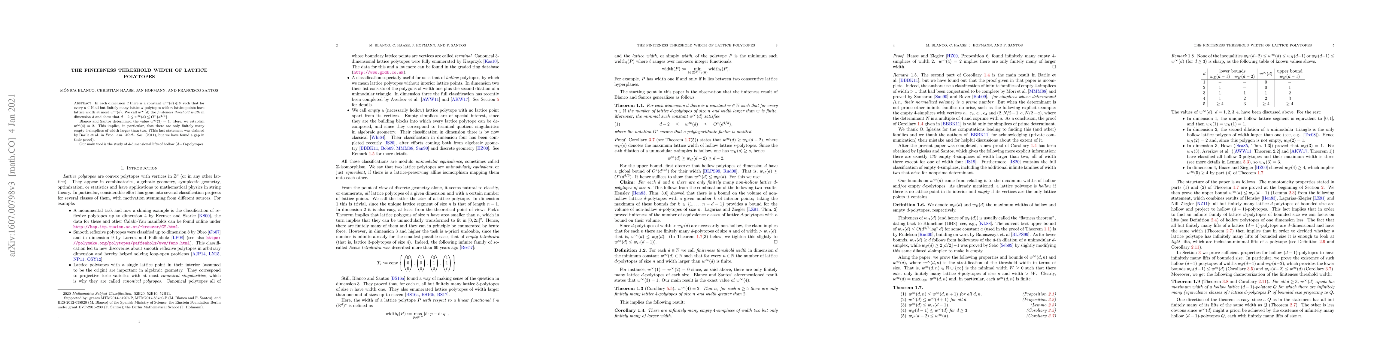This paper establishes the finiteness threshold width $w^\infty(d)$ for lattice polytopes, proving that for each dimension $d$, there exists a constant such that all but finitely many $d$-polytopes with $n$ lattice points have width at most $w^\infty(d)$. The authors determine $w^\infty(4)=2$ and utilize $d$-dimensional lifts of hollow $(d-1)$-polytopes as the main tool in their proofs.