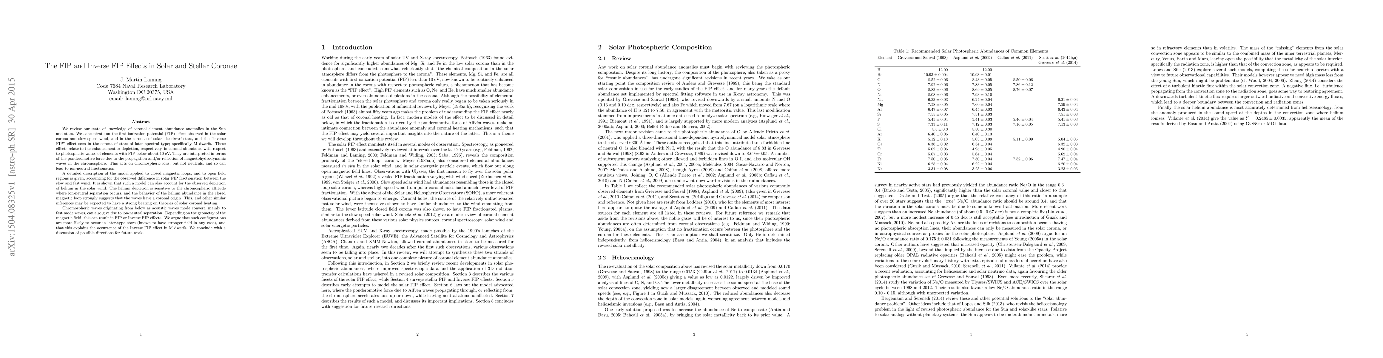 This paper reviews the FIP and inverse FIP effects in solar and stellar coronae, explaining how magnetohydrodynamic waves cause ion-neutral fractionation, leading to enhanced or depleted coronal abundances of elements relative to photospheric values. It proposes a model that accounts for these effects in different stellar environments and suggests that the inverse FIP effect is more prevalent in later-type stars due to stronger magnetic fields.