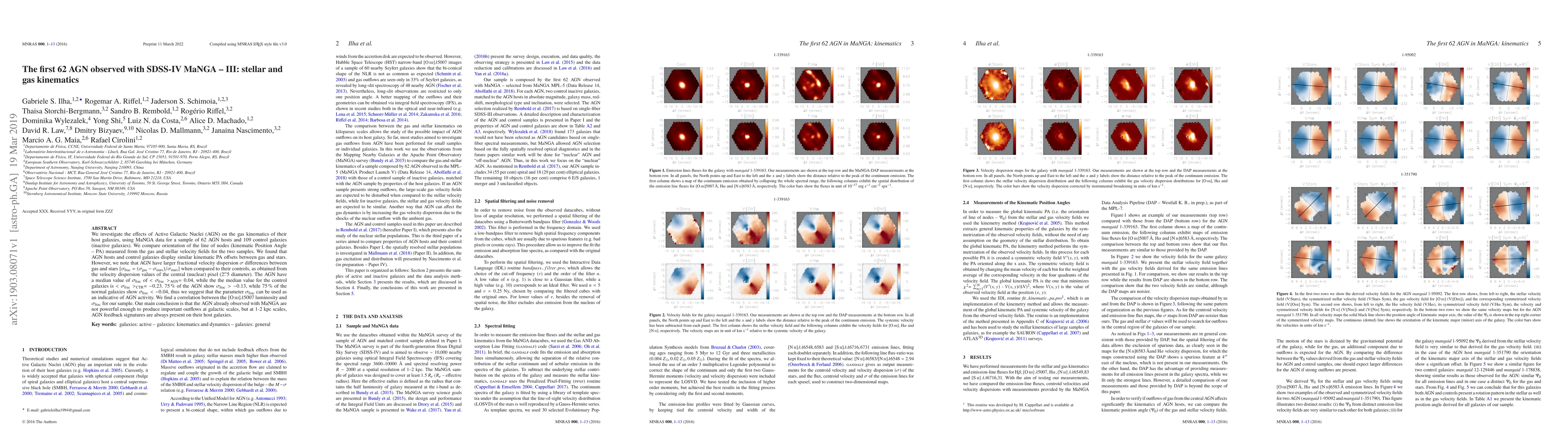 We investigate the effects of Active Galactic Nuclei (AGN) on the gas kinematics of their host galaxies, using MaNGA data for a sample of 62 AGN hosts and 109 control galaxies (inactive galaxies). We compare orientation of the line of nodes (kinematic Position Angle - PA) measured from the gas and stellar velocity fields for the two samples. We found that AGN hosts and control galaxies display similar kinematic PA offsets between gas and stars. However, we note that AGN have larger fractional velocity dispersion $\sigma$ differences between gas and stars [$\sigma_{frac}=(\sigma_{\rm gas}-\sigma_{stars})/\sigma_{\rm stars}$] when compared to their controls, as obtained from the velocity dispersion values of the central (nuclear) pixel (2.5" diameter). The AGN have a median value of $\sigma_{\rm frac}$ of $<\sigma_{frac}>_{\rm AGN}=0.04$, while the the median value for the control galaxies is $<\sigma_{frac}>_{\rm CTR}=-0.23$. 75% of the AGN show $\sigma_{frac}>-0.13$, while 75% of the normal galaxies show $\sigma_{\rm frac}<-0.04$, thus we suggest that the parameter $\sigma_{\rm frac}$ can be used as an indicative of AGN activity. We find a correlation between the [OIII]$\lambda$5007 luminosity and $\sigma_{frac}$ for our sample. Our main conclusion is that the AGN already observed with MaNGA are not powerful enough to produce important outflows at galactic scales, but at 1-2 kpc scales, AGN feedback signatures are always present on their host galaxies.