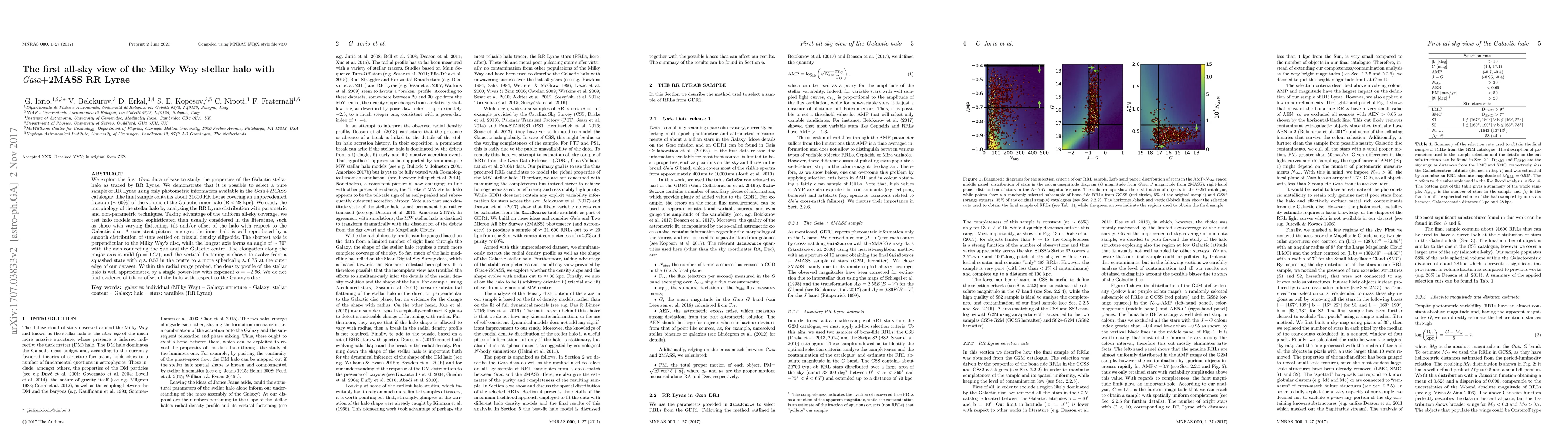 We exploit the first \gaia data release to study the properties of the Galactic stellar halo as traced by RR Lyrae. We demonstrate that it is possible to select a pure sample of RR Lyrae using only photometric information available in the Gaia+2MASS catalogue. The final sample contains about 21600 RR Lyrae covering an unprecedented fraction ($\sim60\%$) of the volume of the Galactic inner halo ($\text{R}<28$ kpc). We study the morphology of the stellar halo by analysing the RR Lyrae distribution with parametric and non-parametric techniques. Taking advantage of the uniform all-sky coverage, we test halo models more sophisticated than usually considered in the literature, such as those with varying flattening, tilt and/or offset of the halo with respect to the Galactic disc. A consistent picture emerges: the inner halo is well reproduced by a smooth distribution of stars settled on triaxial ellipsoids. The minor axis is perpendicular to the Milky Ways disc, while the major axis is misaligned by $\sim20^{\circ}$ from the Galactic Y axis. The elongation along the major axis is mild ($\text{p}=1.27$), and the vertical flattening is shown to evolve from a squashed state with $\text{q}\approx0.57$ in the centre to a more spherical $\text{q}\approx0.75$ at the outer edge of our dataset. The density slope is well approximated by a single power-law with exponent $\alpha=-2.96$. Within the range probed, we see no significant evidence for a change of the radial density slope, out of the plane tilt or an offset of the halo with respect to the Galaxy's centre.