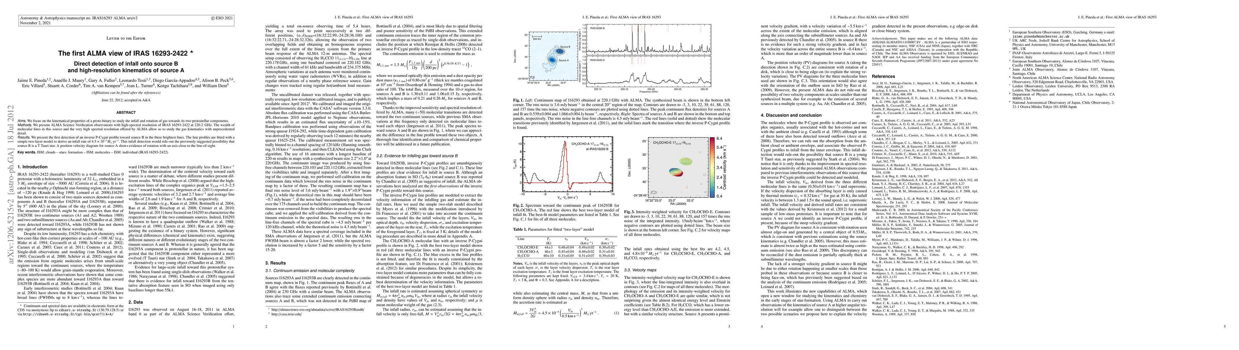 This paper reports ALMA observations of IRAS 16293-2422, revealing direct infall onto source B and high-resolution kinematics of source A, with an infall rate of 4.5x10^-5 Msun/yr, and evidence of rotation in source A.