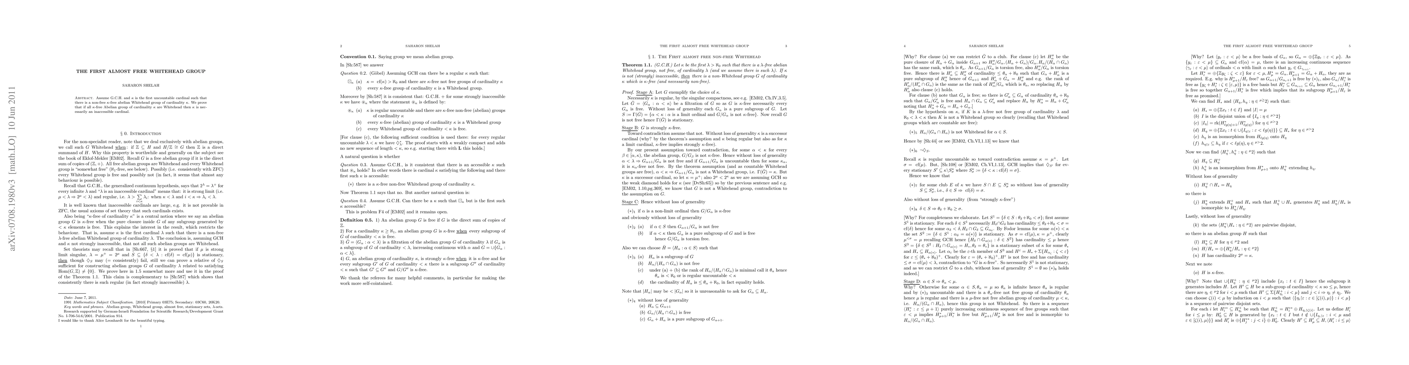 Summary: This paper demonstrates that if there exists a kappa-free abelian group that is not a Whitehead group under the Generalized Continuum Hypothesis (G.C.H.), then kappa must be an inaccessible cardinal. The result establishes a connection between the properties of abelian groups and the nature of certain uncountable cardinals.
