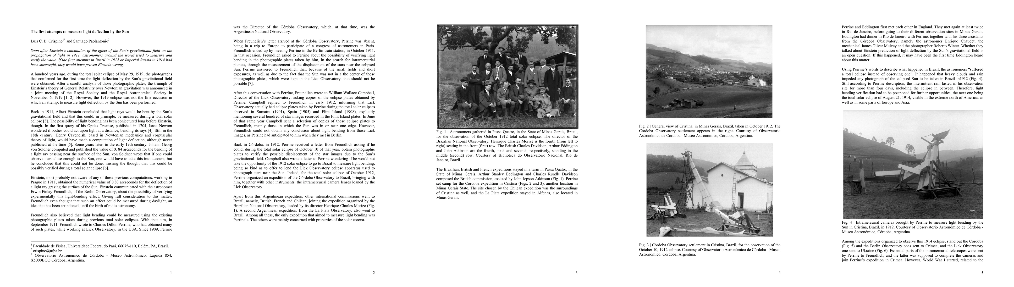 Soon after Einstein's calculation of the effect of the Sun's gravitational field on the propagation of light in 1911, astronomers around the world tried to measure and verify the value. If the first attempts in Brazil in 1912 or Imperial Russia in 1914 had been successful, they would have proven Einstein wrong.