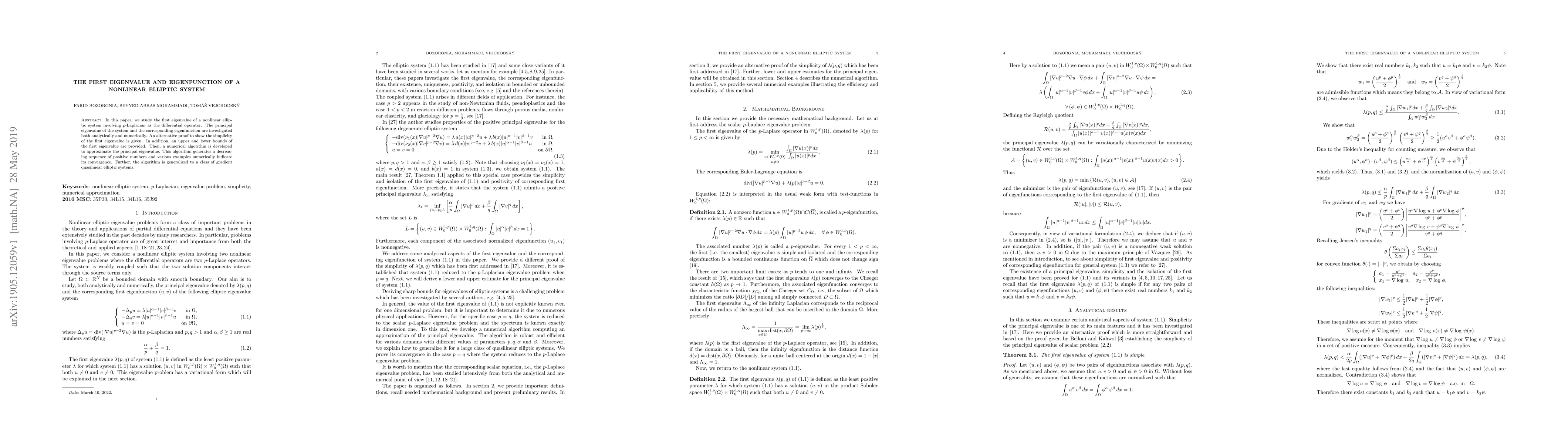 This paper investigates the first eigenvalue and eigenfunction of a nonlinear elliptic system using the $p$-Laplacian operator, providing both analytical and numerical insights. An alternative proof for the simplicity of the first eigenvalue is presented, along with upper and lower bounds, and a numerical algorithm is developed to approximate the principal eigenvalue, showing convergence through various examples.