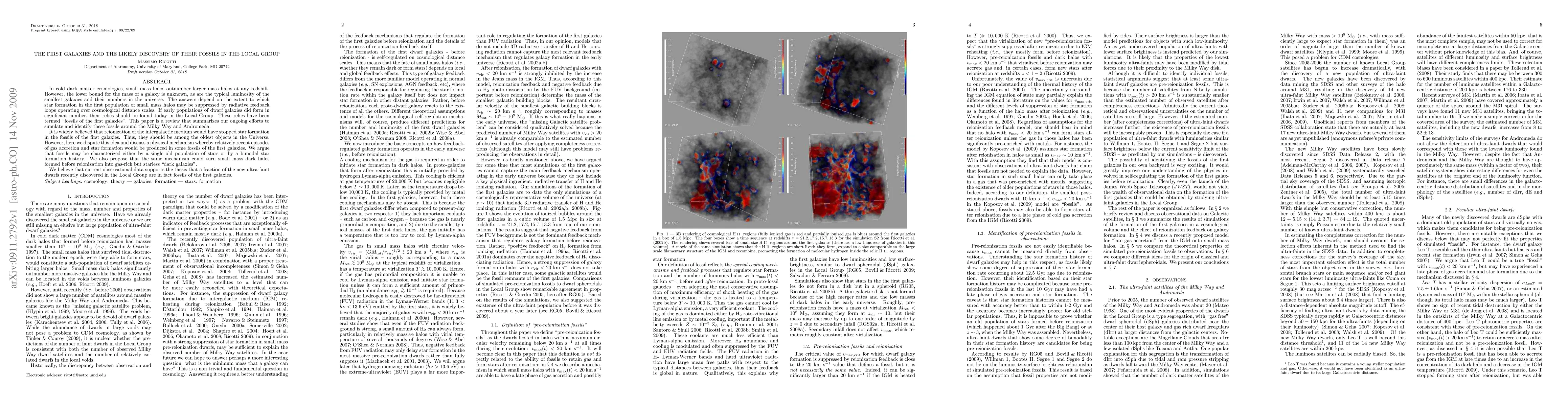 This paper reviews efforts to identify "fossils of the first galaxies" in the Local Group, suggesting that these relics may not be entirely ancient but could experience recent star formation due to gas accretion. It proposes that some of the newly discovered ultra-faint dwarfs may be these ancient remnants.