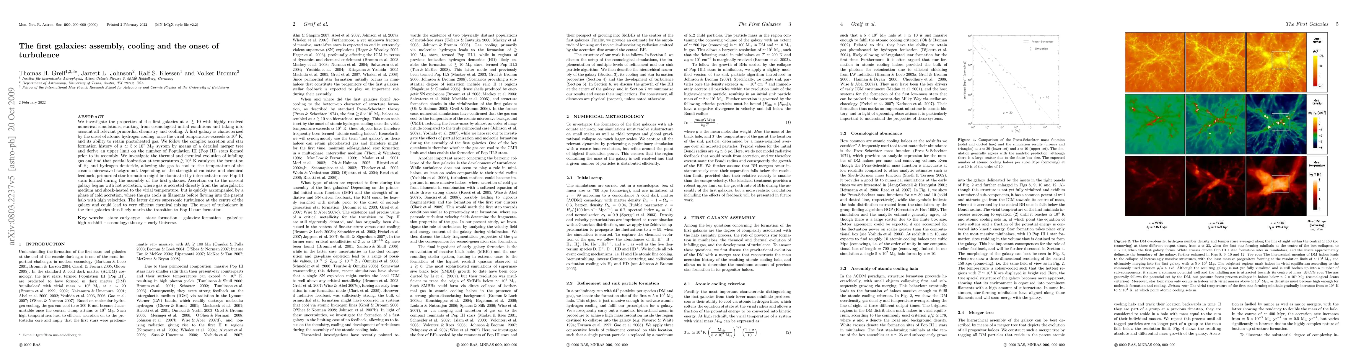 Researchers simulated the formation of the first galaxies at z > 10, finding that turbulence marked the transition to Pop II star formation, possibly dominated by intermediate-mass stars.