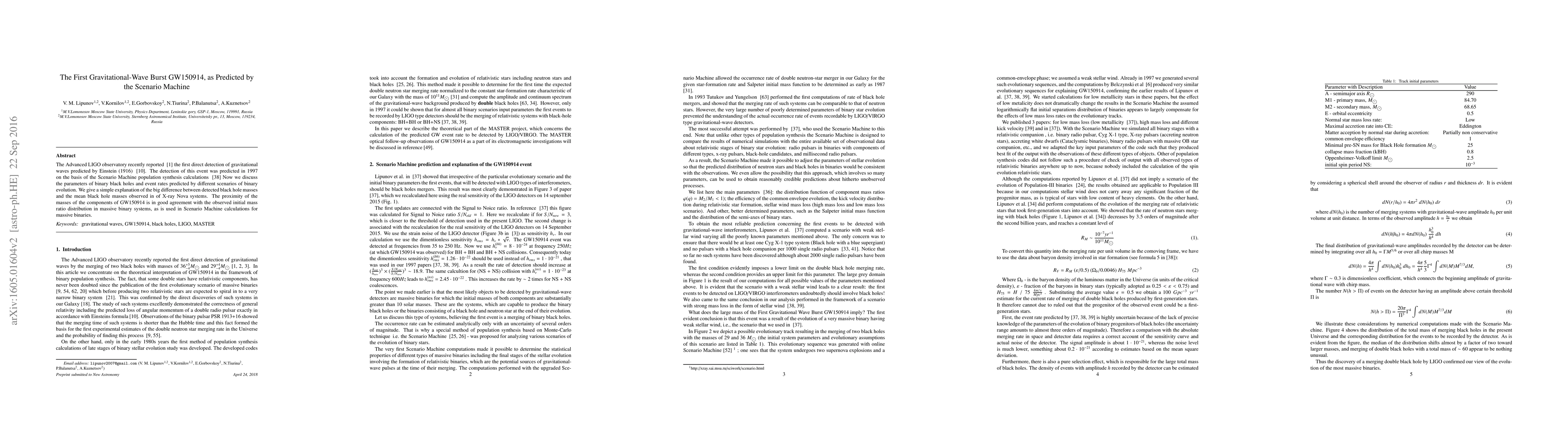 The Advanced LIGO observatory recently reported (Abbott et al., 2016a) the first direct detection of gravitational waves predicted by Einstein (1916). The detection of this event was predicted in 1997 on the basis of the Scenario Machine population synthesis calculations (Lipunov et al., NewA, 2, 43). Now we discuss the parameters of binary black holes and event rates predicted by different scenarios of binary evolution. We give a simple explanation of the big difference between detected black hole masses and the mean black hole masses observed in of X-ray Nova systems. The proximity of the masses of the components of GW150914 is in good agreement with the observed initial mass ratio distribution in massive binary systems, as is used in Scenario Machine calculations for massive binaries.