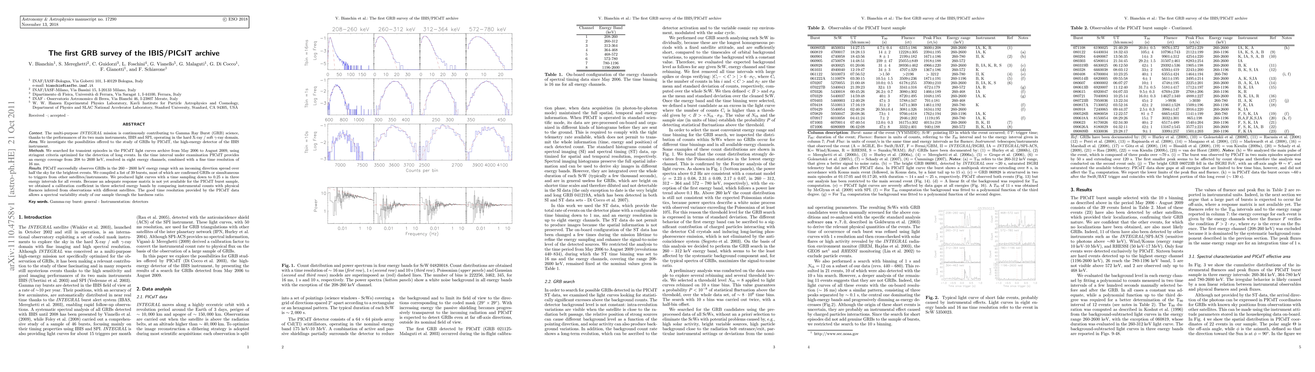 The paper presents a comprehensive survey of GRBs using the IBIS/PICsIT instrument, providing detailed light curves and hardness ratios, as well as a method for rough calibration between physical and instrumental fluences.