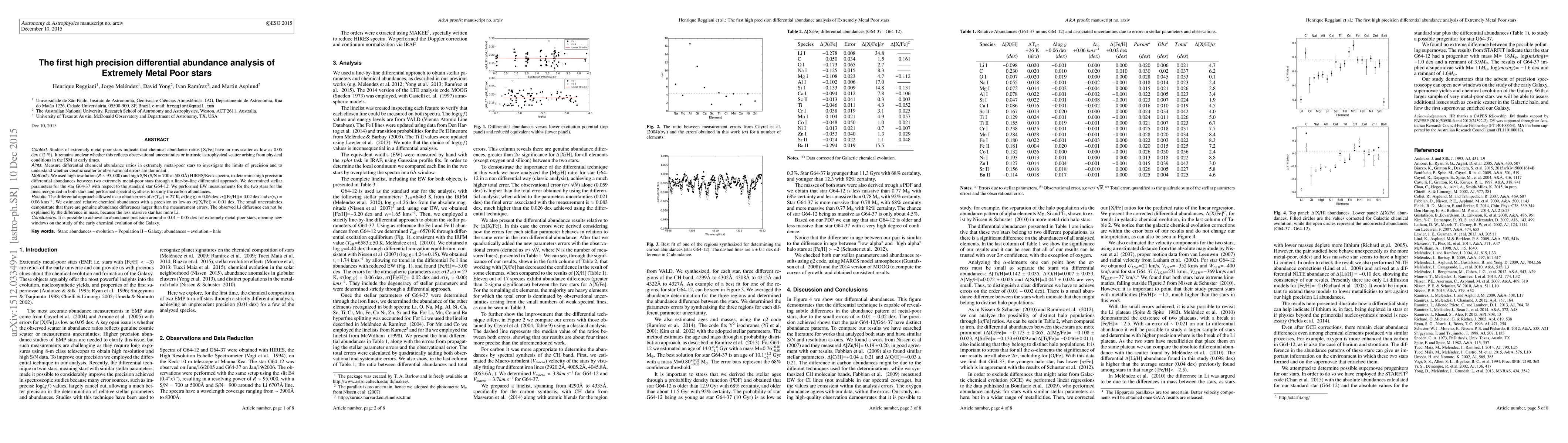 Context: Studies of extremely metal-poor stars indicate that chemical abundance ratios [X/Fe] have an rms scatter as low as 0.05 dex (12 \%). It remains unclear whether this reflects observational uncertainties or intrinsic astrophysical scatter arising from physical conditions in the ISM at early times. Aims: Measure differential chemical abundance ratios in extremely metal-poor stars to investigate the limits of precision and to understand whether cosmic scatter or observational errors are dominant. Methods: We used high resolution (R $\sim 95,000$) and high S/N (S/N $= 700$ at 5000$\AA$) HIRES/Keck spectra, to determine high precision differential abundances between two extremely metal-poor stars through a line-by-line differential approach. We determined stellar parameters for the star G64-37 with respect to the standard star G64-12. We performed EW measurements for the two stars for the lines recognized in both stars and performed spectral synthesis to study the carbon abundances. Results: The differential approach allowed us to obtain errors of $\sigma$(T$_{eff}$ ) $=$ 27 K, $\sigma$(log $g$) $=$ 0.06 dex, $\sigma$([Fe/H]) $=$ 0.02 dex and $\sigma$(v$_{t}$ ) $=$ 0.06 kms$^{-1}$. We estimated relative chemical abundances with a precision as low as $\sigma$([X/Fe]) $\approx$ 0.01 dex. The small uncertainties demonstrate that there are genuine abundance differences larger than the measurement errors. The observed Li difference can not be explained by the difference in mass, because the less massive star has more Li. Conclusions: It is possible to achieve an abundance precision around $\approx$ 0.01-0.05 dex for extremely metal-poor stars, opening new windows on the study of the early chemical evolution of the Galaxy.