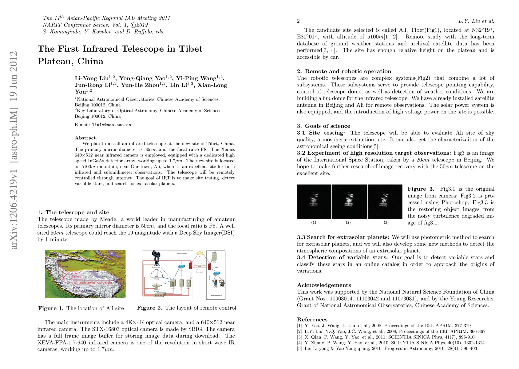 A 50cm infrared telescope with a high-speed camera will be installed on the Tibet Plateau to detect variable stars and search for extrasolar planets, utilizing its excellent location for infrared observations.