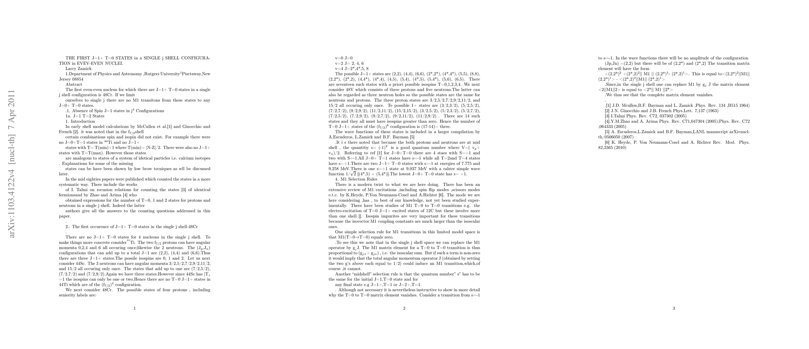 The first even-even nucleus for which there are J=1+ T=0 states in a single j shell configuration is 48Cr. In this limited model space all T=0 to T=0 M1 matrix elements vanish.