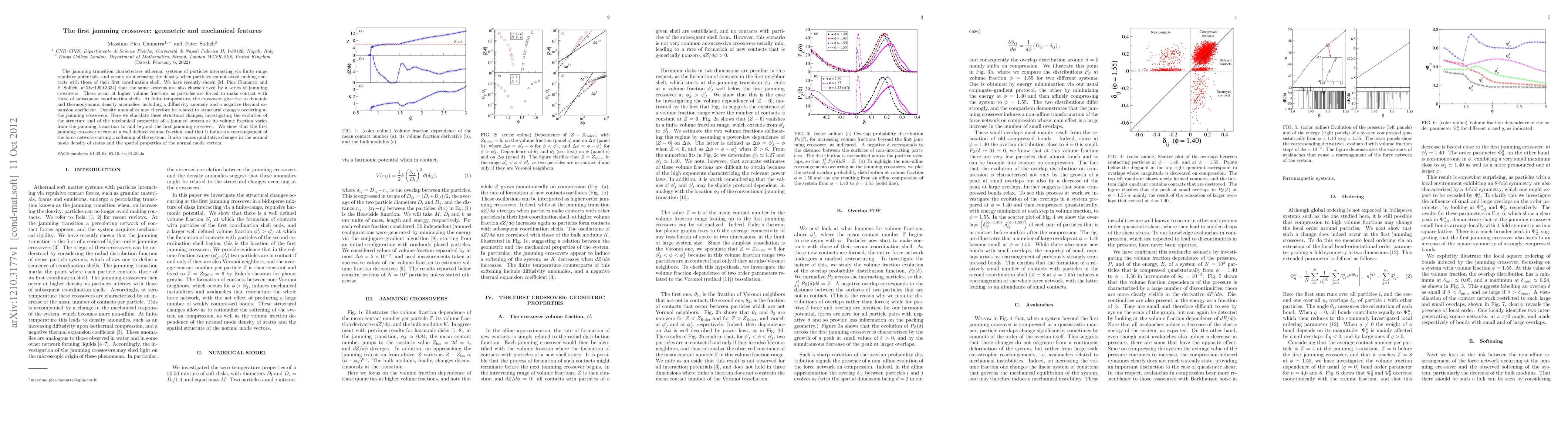 This paper investigates the structural and mechanical changes in particle systems undergoing jamming crossovers, revealing that the first jamming crossover induces a force network rearrangement, softening the system, and alters the normal mode density of states and spatial properties.