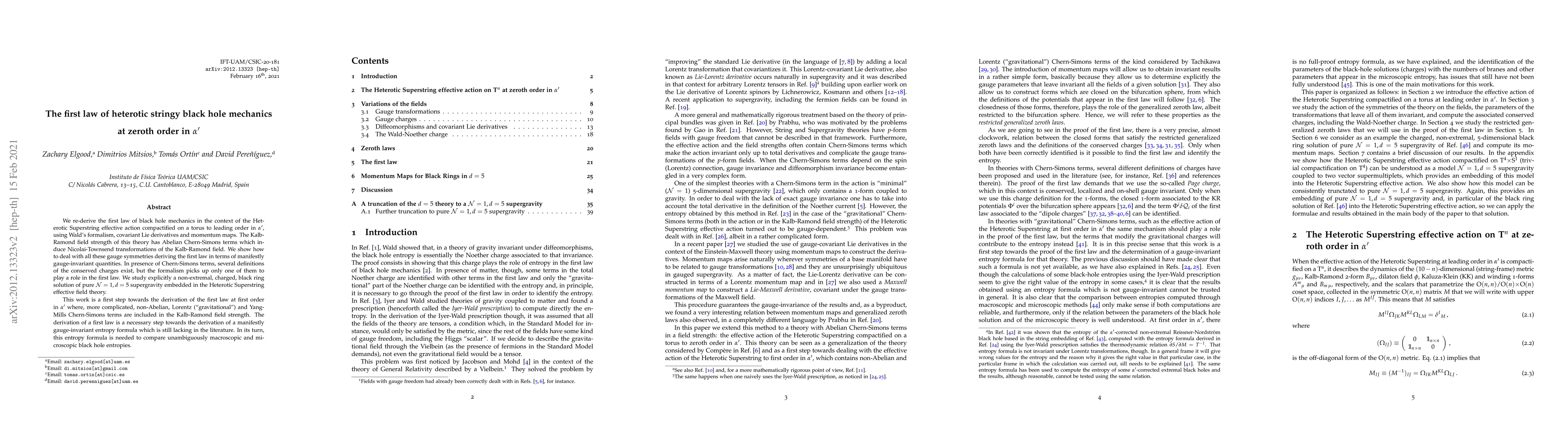 Researchers re-derived the first law of black hole mechanics using Wald's formalism and covariant Lie derivatives in a heterotic string theory, focusing on gauge-invariant quantities and handling Chern-Simons terms.