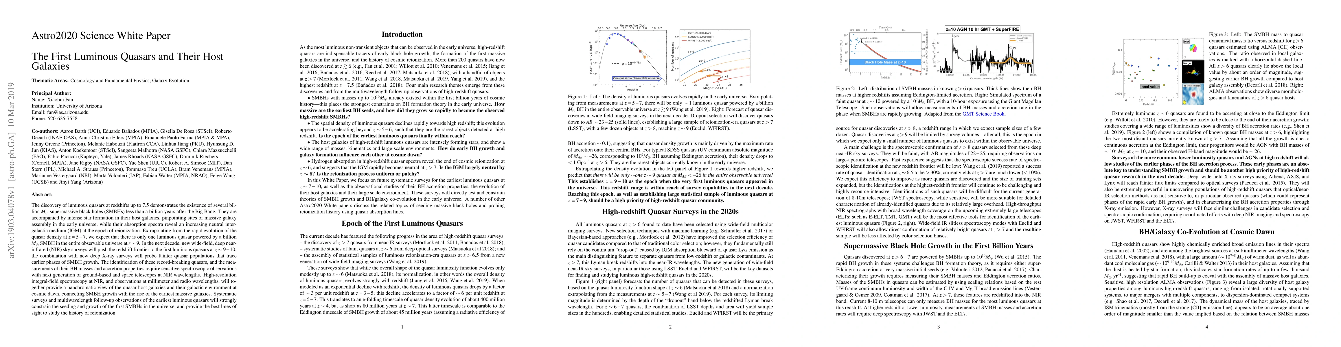 This paper discusses the discovery of luminous quasars at high redshifts up to 7.5, revealing supermassive black holes and intense star formation in their early universe host galaxies, and the implications for the epoch of reionization. Upcoming surveys and next-generation telescopes aim to identify even more distant quasars, providing insights into the growth of the first supermassive black holes and the history of reionization.