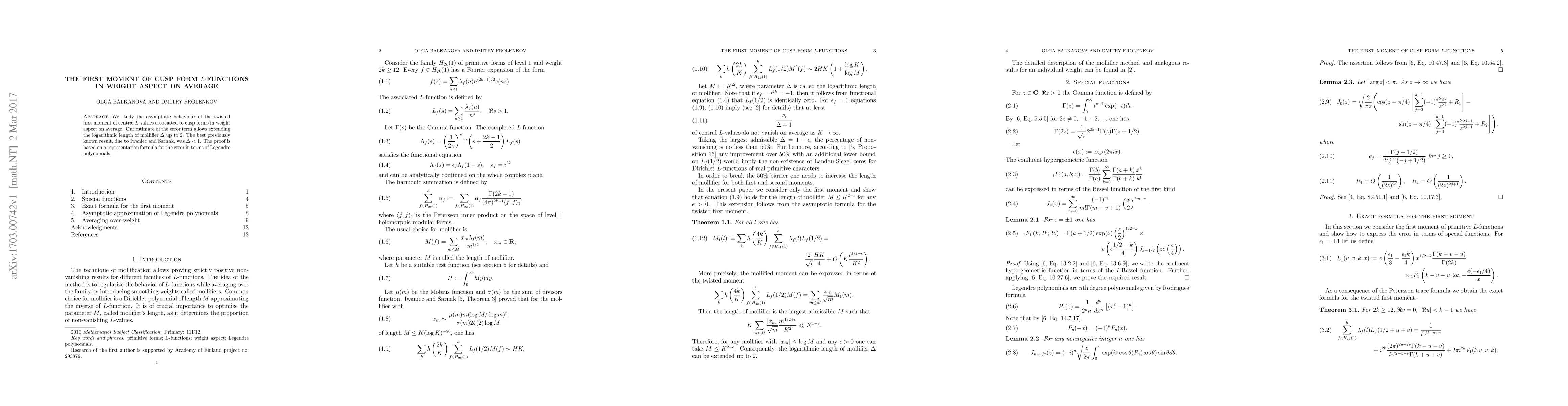We study the asymptotic behaviour of the twisted first moment of central $L$-values associated to cusp forms in weight aspect on average. Our estimate of the error term allows extending the logarithmic length of mollifier $\Delta$ up to 2. The best previously known result, due to Iwaniec and Sarnak, was $\Delta<1$. The proof is based on a representation formula for the error in terms of Legendre polynomials.