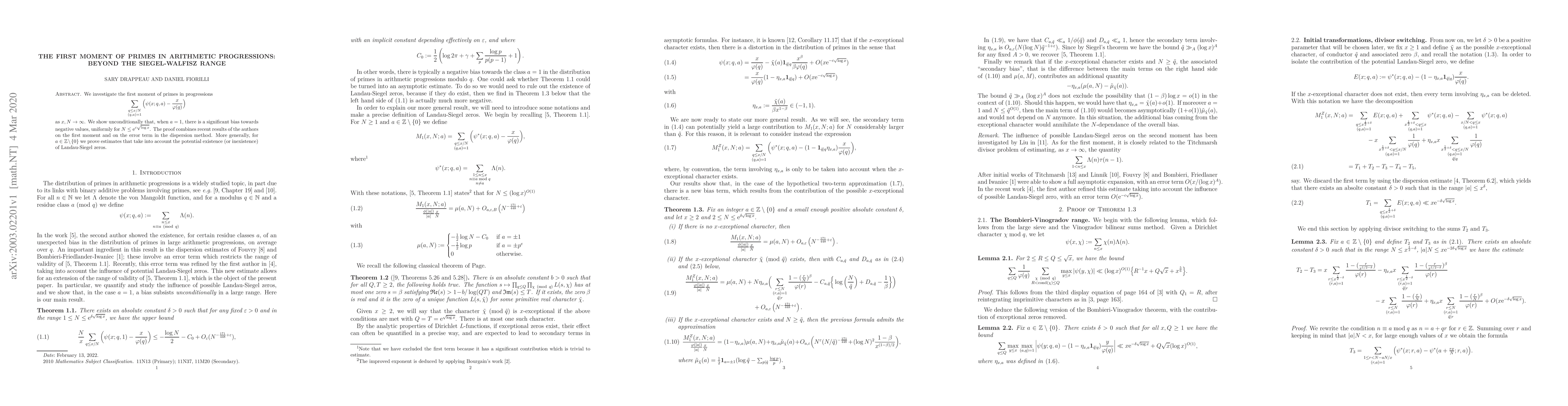 This research paper investigates the distribution of prime numbers in arithmetic progressions, finding a significant bias towards negative values for certain ranges, with implications for understanding prime number theory beyond the Siegel-Walfisz range.