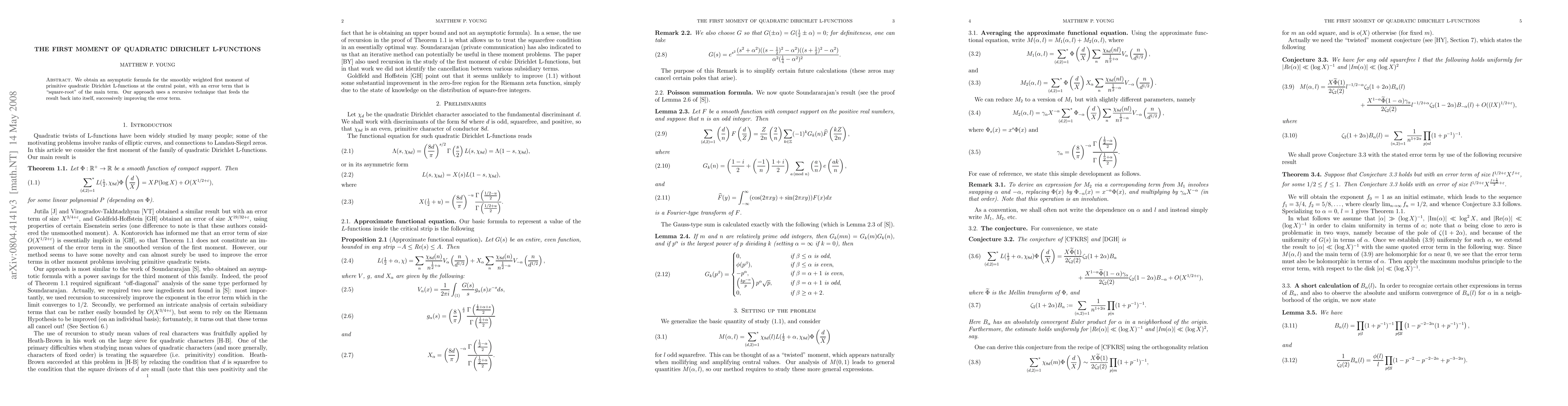 Summary: This study provides an asymptotic formula for the first moment of primitive quadratic Dirichlet L-functions at their central point, achieving an error term that is "square-root" of the main term, utilizing a recursive technique that iteratively refines the error.