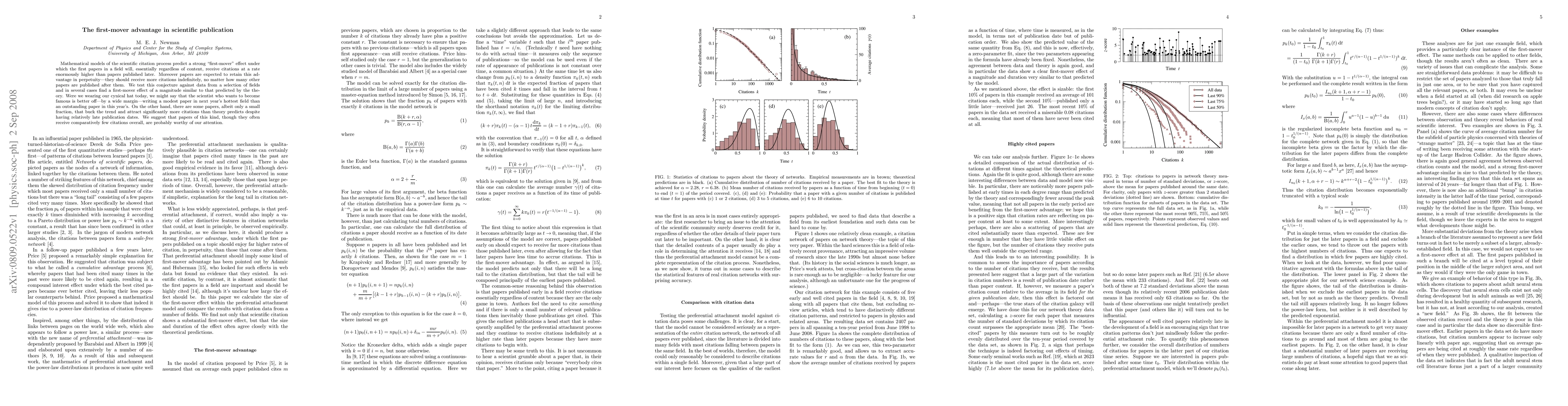 This paper investigates the "first-mover" effect in scientific publications, finding that early papers in a field often receive significantly more citations than later ones, regardless of content. However, a small number of later papers occasionally attract more citations than predicted, suggesting they may hold notable scientific value.