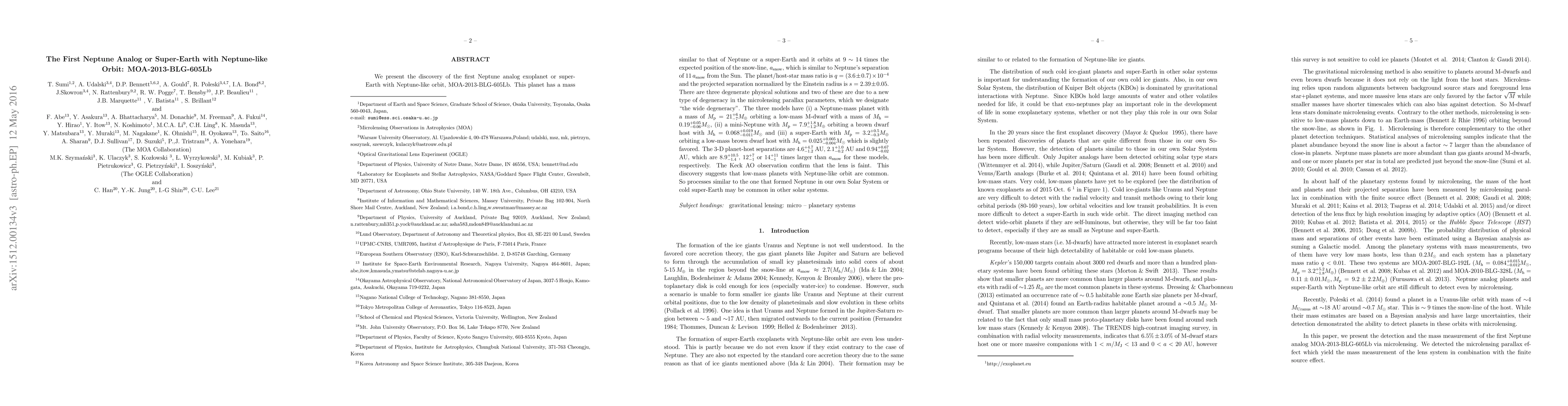 The discovery of MOA-2013-BLG-605Lb reveals a Neptune analog exoplanet with a mass similar to that of Neptune or a super-Earth, orbiting at 9-14 times the expected position of the snow-line in its solar system.