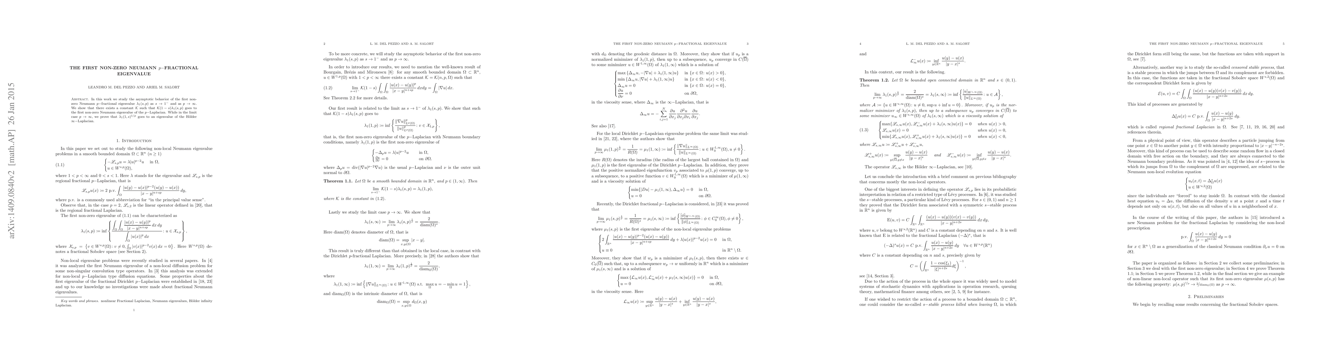 This paper investigates the asymptotic behavior of the first non-zero Neumann $p-$fractional eigenvalue $\lambda_1(s,p)$ as $s$ approaches $1$ and as $p$ tends to infinity. The study reveals a constant $\mathcal{K}$ such that $\mathcal{K}(1-s)\lambda_1(s,p)$ converges to the first non-zero Neumann eigenvalue of the $p-$Laplacian, and $\lambda_1(1,s)^{1/p}$ converges to an eigenvalue of the H\"older $\infty-$Laplacian as $p$ approaches infinity.