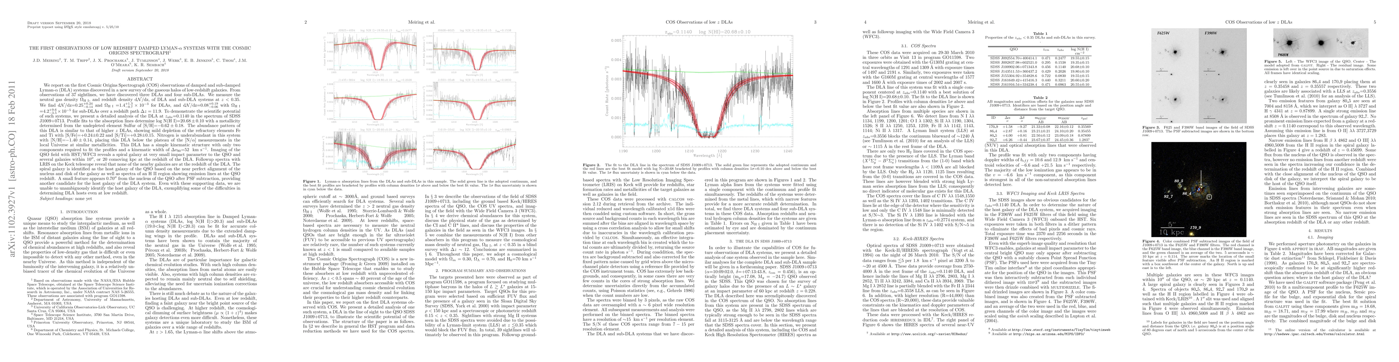 We report on the first Cosmic Origins Spectrograph (COS) observations of damped and sub-damped Lyman-alpha (DLA) systems discovered in a new survey of the gaseous halos of low-redshift galaxies. From observations of 37 sightlines, we have discovered three DLAs and four sub-DLAs. We measure the neutral gas density Omega(HI), and redshift density dN/dz, of DLA and sub-DLA systems at z<0.35. We find dN/dz=0.25 and Omega(HI)=1.4x10^-3 for DLAs, and dN/dz=0.08 with Omega(HI)=4.2x10^-5 for sub-DLAs over a redshift path delta z=11.9. To demonstrate the scientific potential of such systems, we present a detailed analysis of the DLA at z=0.1140 in the spectrum of SDSS J1009+0713. Profile fits to the absorption lines determine log N(H I)=20.68pm0.10 with a metallicity determined from the undepleted element Sulfur of [S/H]=-0.62pm0.18. The abundance pattern of this DLA is similar to that of higher z DLAs, showing mild depletion of the refractory elements Fe and Ti with [S/Fe]=+0.24pm0.22 and [S/Ti]=+0.28pm0.15. Nitrogen is underabundant in this system with [N/H]=-1.40pm0.14, placing this DLA below the plateau of the [N/alpha] measurements in the local Universe at similar metallicities. This DLA has a simple kinematic structure with only two components required to fit the profiles and a kinematic width of 52 km/s. Imaging of the QSO field with WFC3 reveals a spiral galaxy at very small impact parameter to the QSO and several galaxies within 10". Followup spectra with LRIS reveal that none of the nearby galaxies are at the redshift of the DLA. The spiral galaxy is identified as the host galaxy of the QSO based on the near perfect alignment of the nucleus and disk of the galaxy as well as spectra of an H II region showing emission lines at the QSO redshift. A small feature appears 0.70" from the nucleus of the QSO after PSF subtraction, providing another candidate for the host galaxy of the DLA. (abb)