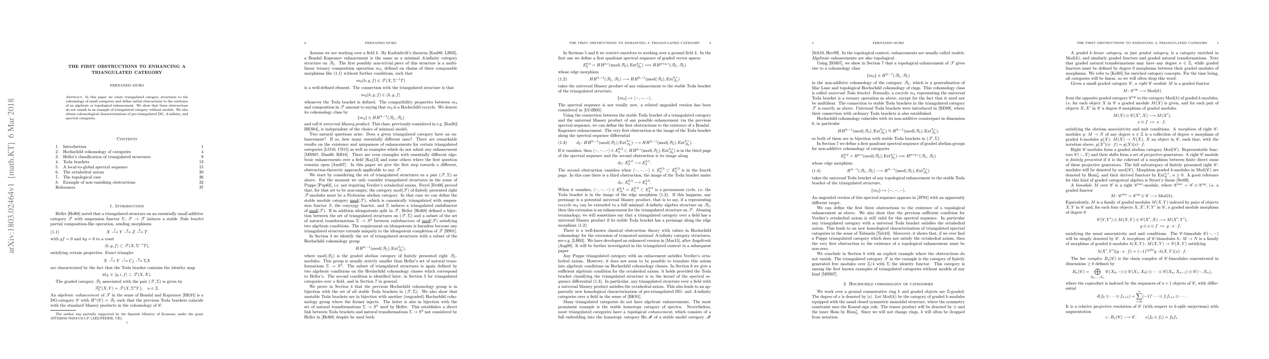 This paper identifies initial obstructions to enhancing triangulated categories to algebraic or topological models, demonstrating these obstructions in a specific example. It also provides cohomological characterizations for pre-triangulated DG, A-infinity, and spectral categories.