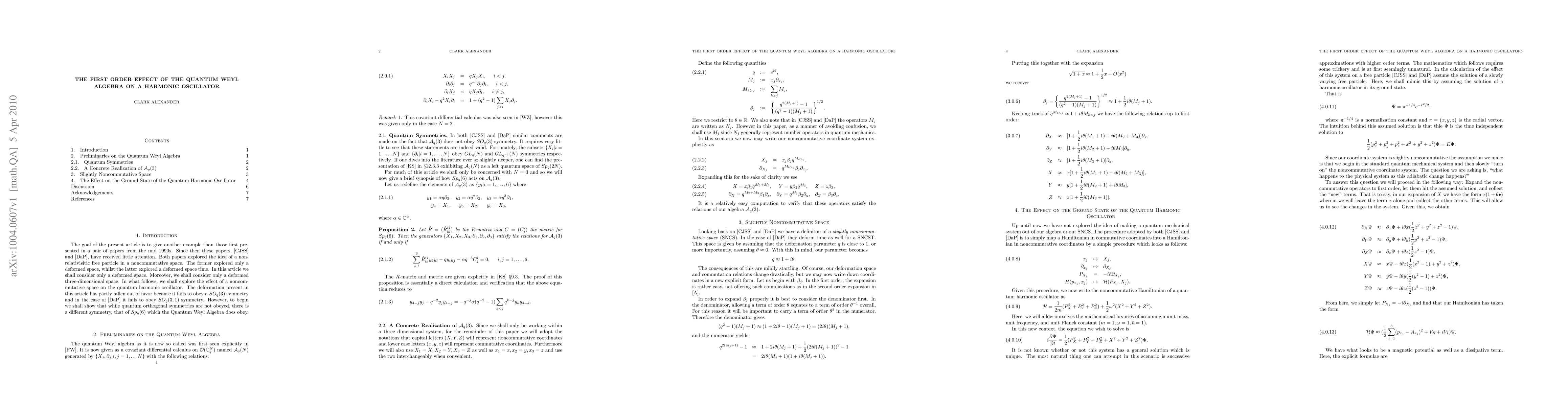 We examine a concrete realization of the quantum Weyl algebra and expand it to first order. From here we apply the resulting algebra to a quantum harmonic oscillator in its ground state and observe how a slightly noncommutative space affects the physical system. The main result is, similar to a free particle a magnetic field appears, but a new observation is that a dissipative term appears in the perturbed Hamiltonian as well.