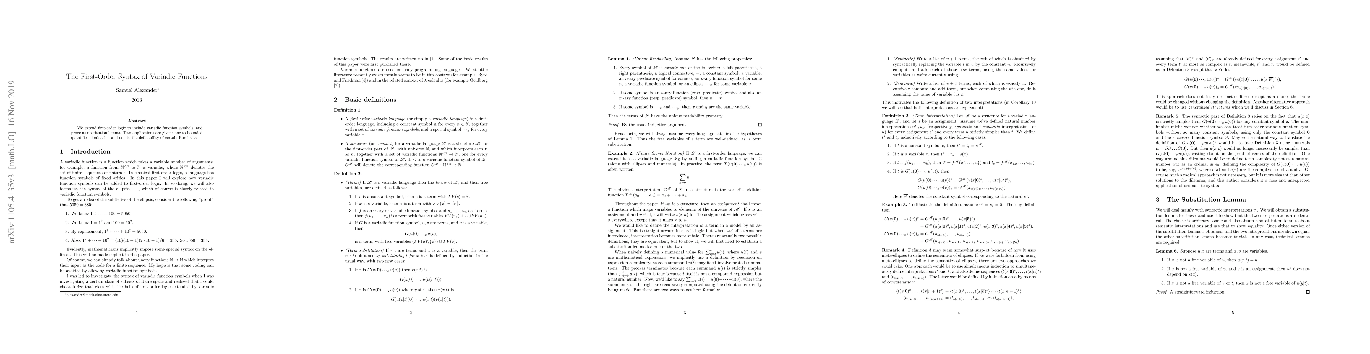We extend first-order logic to include variadic function symbols, and prove a substitution lemma. Two applications are given: one to bounded quantifier elimination and one to the definability of certain Borel sets.