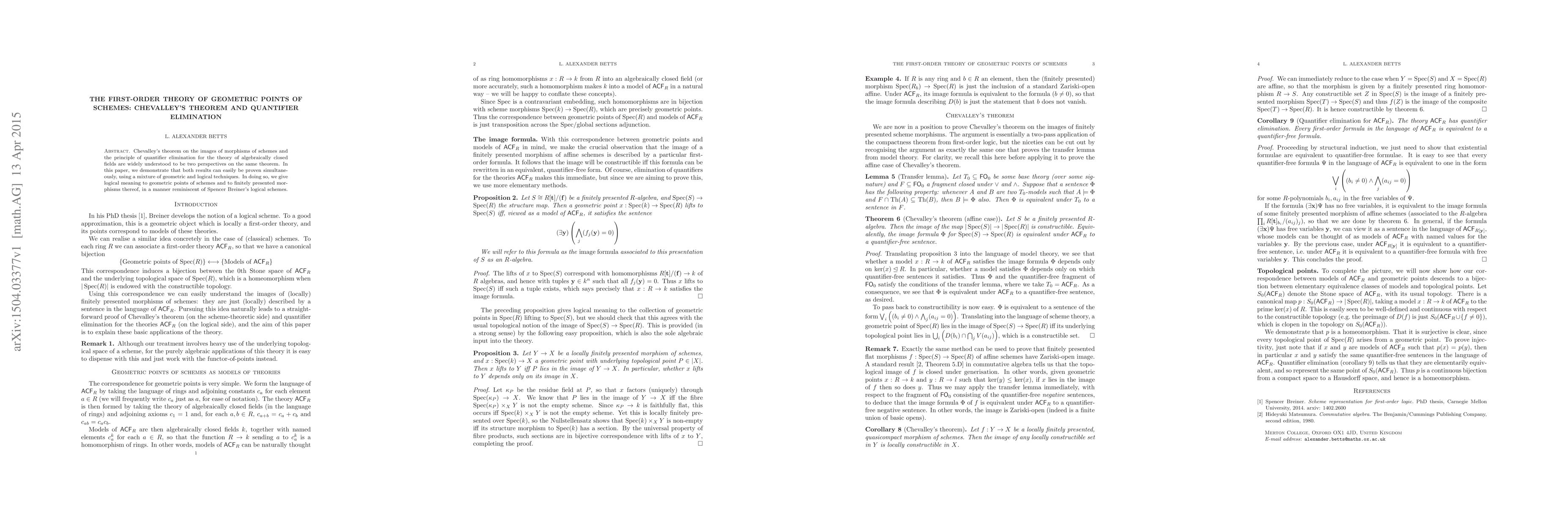 Chevalley's theorem on the images of morphisms of schemes and the principle of quantifier elimination for the theory of algebraically closed fields are widely understood to be two perspectives on the same theorem. In this paper, we demonstrate that both results can easily be proven simultaneously, using a mixture of geometric and logical techniques. In doing so, we give logical meaning to geometric points of schemes and to finitely presented morphisms thereof, in a manner reminiscent of Spencer Breiner's logical schemes.