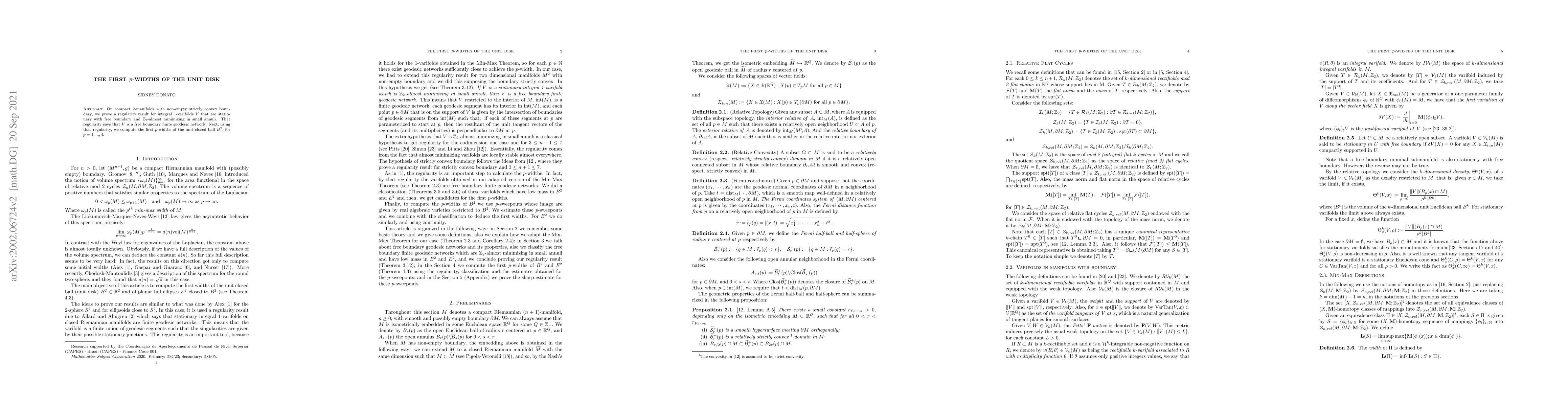 Researchers prove a regularity result for integral 1-varifolds on compact 2-manifolds with convex boundary, showing that such varifolds are finite geodesic networks. The study also computes the first $p$-widths of the unit closed ball, resolving its geometric structure.