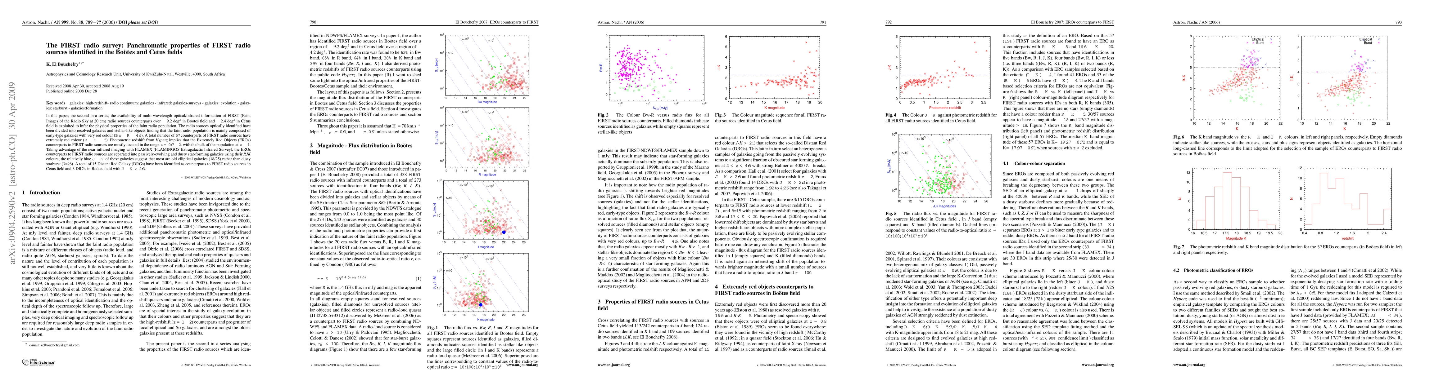 This paper analyzes the multi-wavelength properties of faint radio sources from the FIRST survey in the Bootes and Cetus fields, finding that the faint radio population primarily consists of early-type galaxies with very red colors. The study identifies Extremely Red Objects (EROs) counterparts, mostly located at z=0.7-2, with most being old elliptical galaxies rather than dusty starbursts.