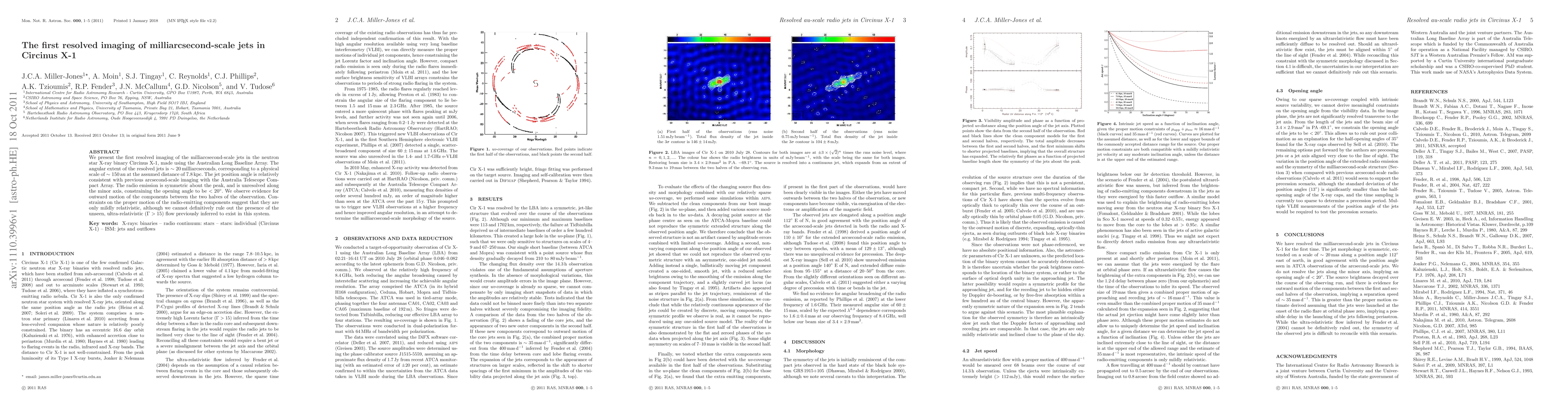This paper presents the first resolved imaging of milliarcsecond-scale jets in Circinus X-1 using the Australian Long Baseline Array, revealing a physical scale of ~150 au and suggesting mildly relativistic motion of the components. The jets show symmetry and an opening angle less than 20 degrees.