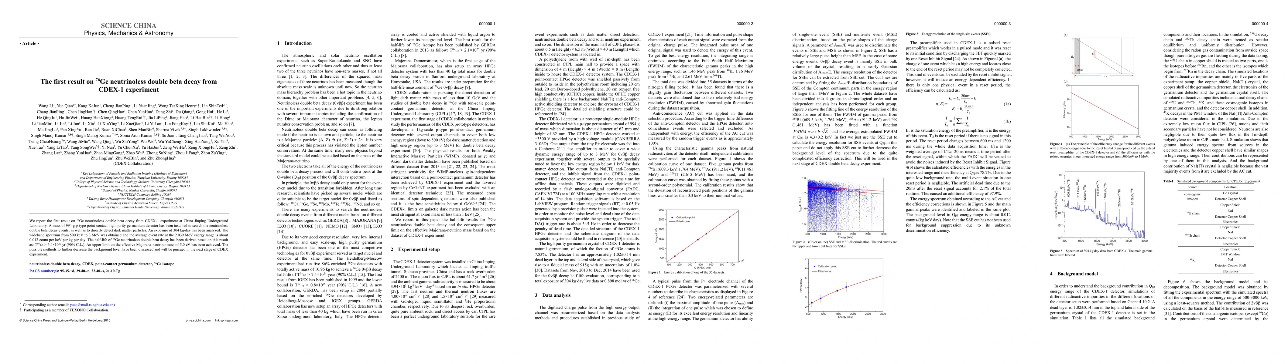 The CDEX-1 experiment at China Jinping Underground Laboratory has reported the first result on Ge-76 neutrinoless double beta decay, achieving a half-life limit of T 1/2 > 6.4*10^22 yr (90% C.L.) and an upper limit on the effective Majorana-neutrino mass of 5.0 eV. Future efforts aim to reduce background levels for further improvements.