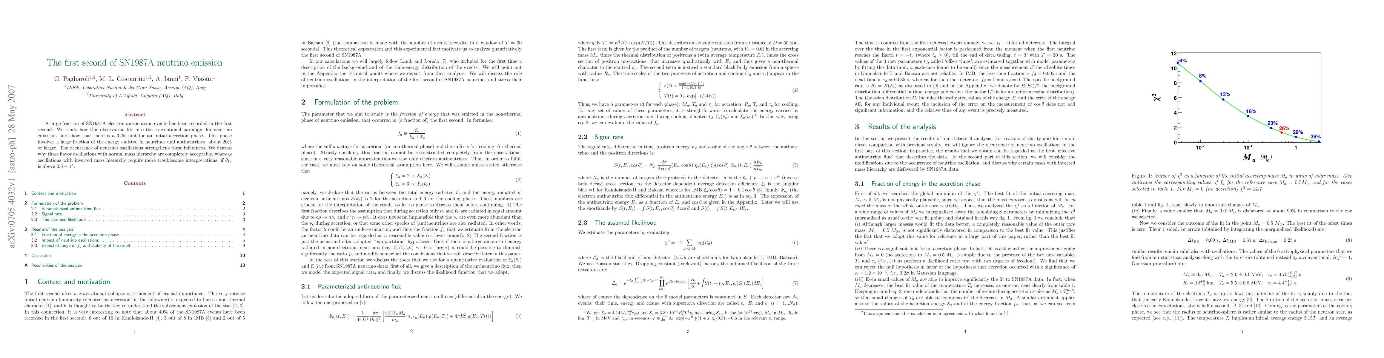 A large fraction of SN1987A electron antineutrino events has been recorded in the first second. We study how this observation fits into the conventional paradigm for neutrino emission, and show that there is a 3.2 sigma hint for an initial accretion phase. This phase involves a large fraction of the energy emitted in neutrinos and antineutrinos, about 20 % or larger. The occurrence of neutrino oscillations strengthens these inferences. We discuss why three flavor oscillations with normal mass hierarchy are completely acceptable, whereas oscillations with inverted mass hierarchy require more troublesome interpretations, if theta(13) is above 0.5-1 degrees.