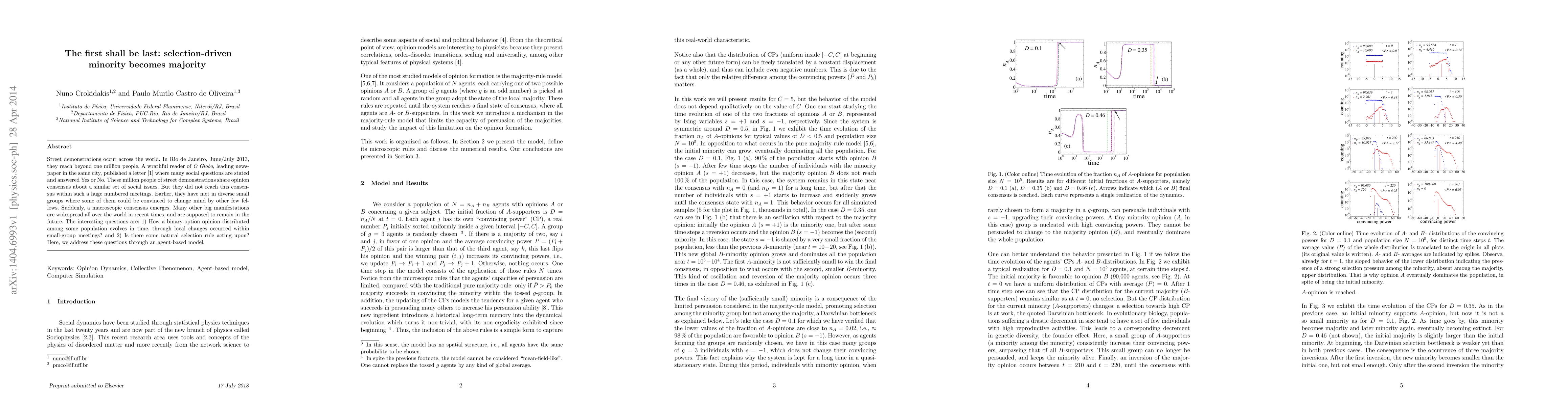 Street demonstrations occur across the world. In Rio de Janeiro, June/July 2013, they reach beyond one million people. A wrathful reader of \textit{O Globo}, leading newspaper in the same city, published a letter \cite{OGlobo} where many social questions are stated and answered Yes or No. These million people of street demonstrations share opinion consensus about a similar set of social issues. But they did not reach this consensus within such a huge numbered meetings. Earlier, they have met in diverse small groups where some of them could be convinced to change mind by other few fellows. Suddenly, a macroscopic consensus emerges. Many other big manifestations are widespread all over the world in recent times, and are supposed to remain in the future. The interesting questions are: 1) How a binary-option opinion distributed among some population evolves in time, through local changes occurred within small-group meetings? and 2) Is there some natural selection rule acting upon? Here, we address these questions through an agent-based model.