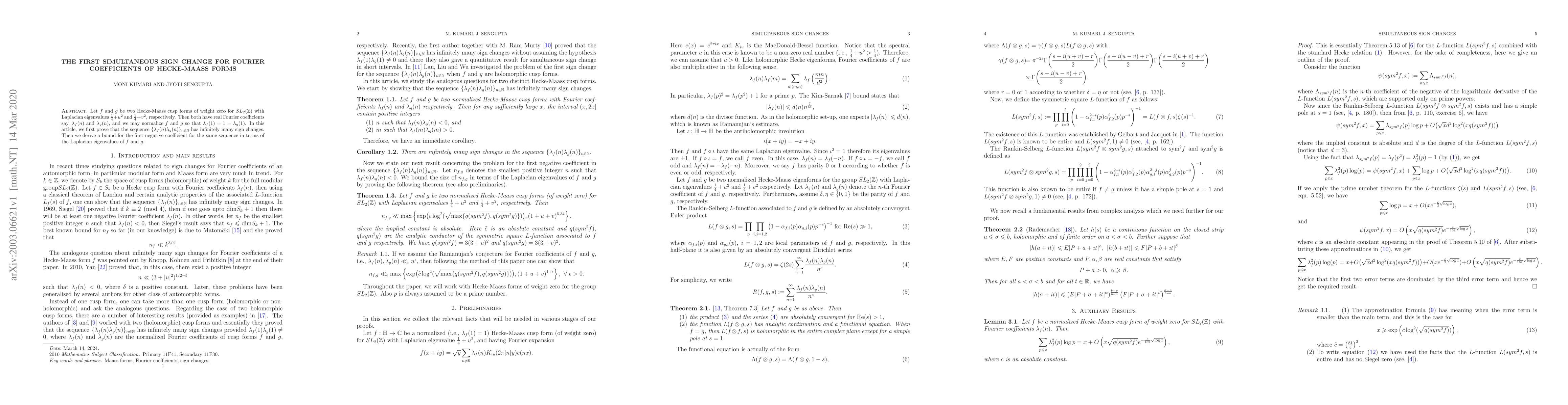 Let $f$ and $g$ be two Hecke-Maass cusp forms of weight zero for $SL_2(\mathbb Z)$ with Laplacian eigenvalues $\frac{1}{4}+u^2$ and $\frac{1}{4}+v^2$, respectively. Then both have real Fourier coefficients say, $\lambda_f(n)$ and $\lambda_g(n)$, and we may normalize $f$ and $g$ so that $\lambda_f(1)=1=\lambda_g(1)$. In this article, we first prove that the sequence $\{\lambda_f(n)\lambda_g(n)\}_{n \in \mathbb{N}}$ has infinitely many sign changes. Then we derive a bound for the first negative coefficient for the same sequence in terms of the Laplacian eigenvalues of $f$ and $g$.