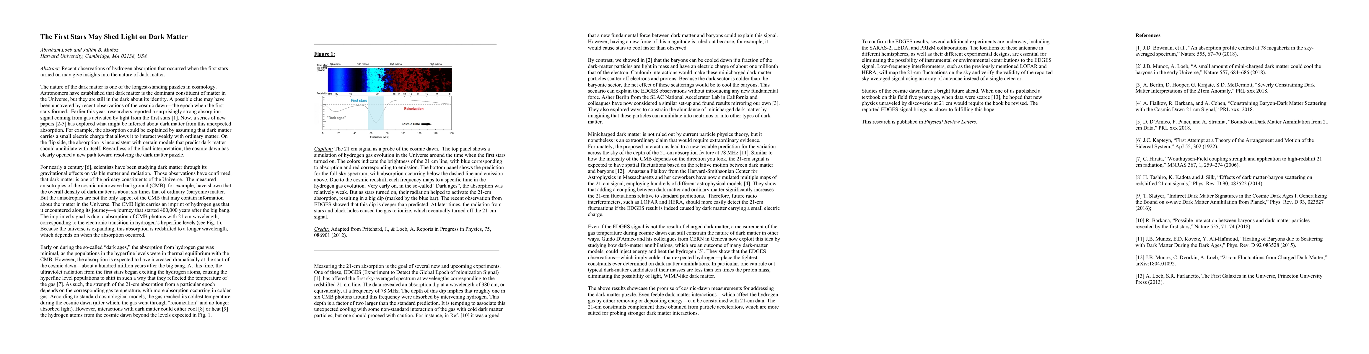 Recent observations of hydrogen absorption that occurred when the first stars turned on may give insights into the nature of dark matter.