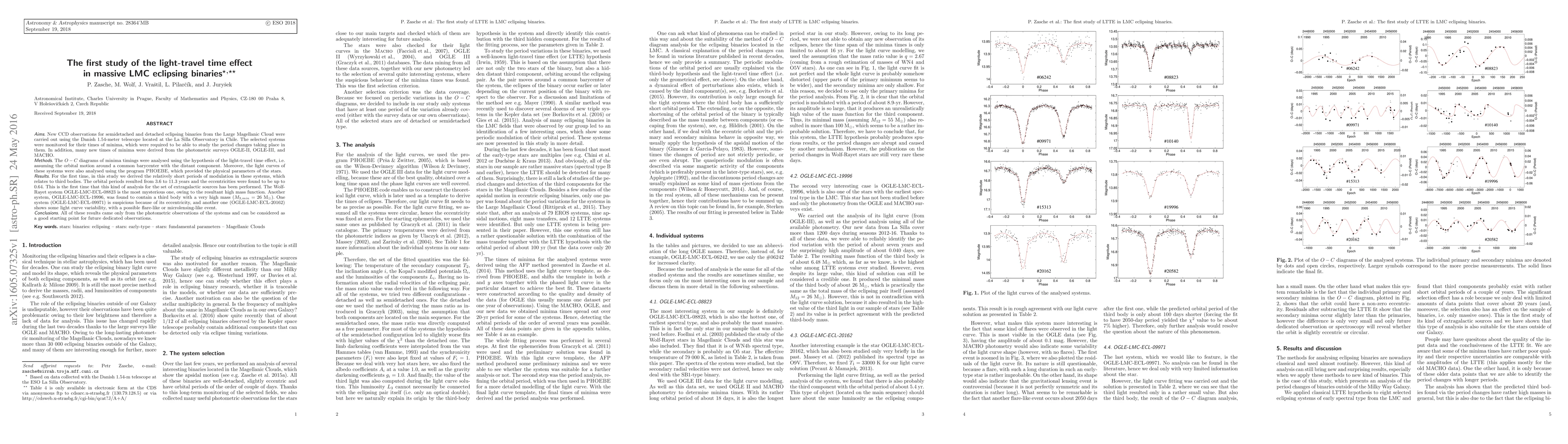 This study analyzes eclipsing binaries in the Large Magellanic Cloud, deriving their orbital periods and eccentricities using light-travel time effect. It identifies systems with third bodies, including one with a high-mass third body and another showing unusual variability, marking the first such analysis for extragalactic sources.