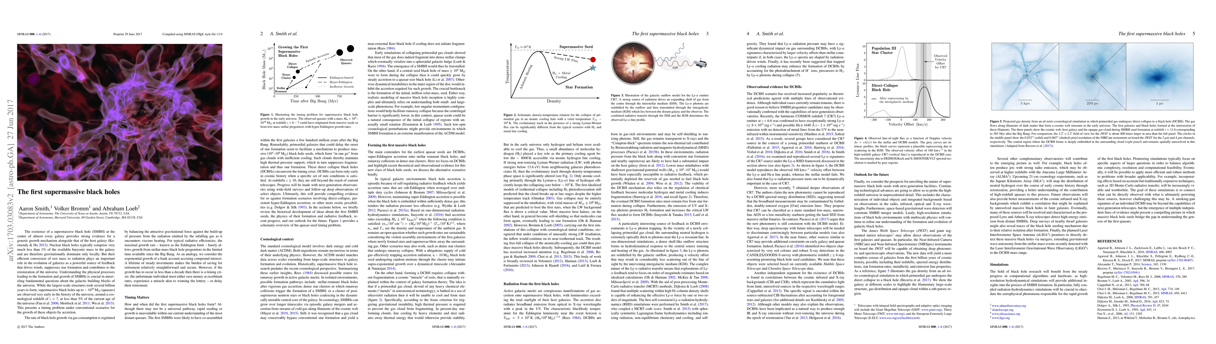 Summary: This paper reviews the historical and theoretical development of ideas surrounding the formation of the first supermassive black holes, focusing on their seeds, formation physics, and radiative feedback, while highlighting recent advancements and future research prospects.