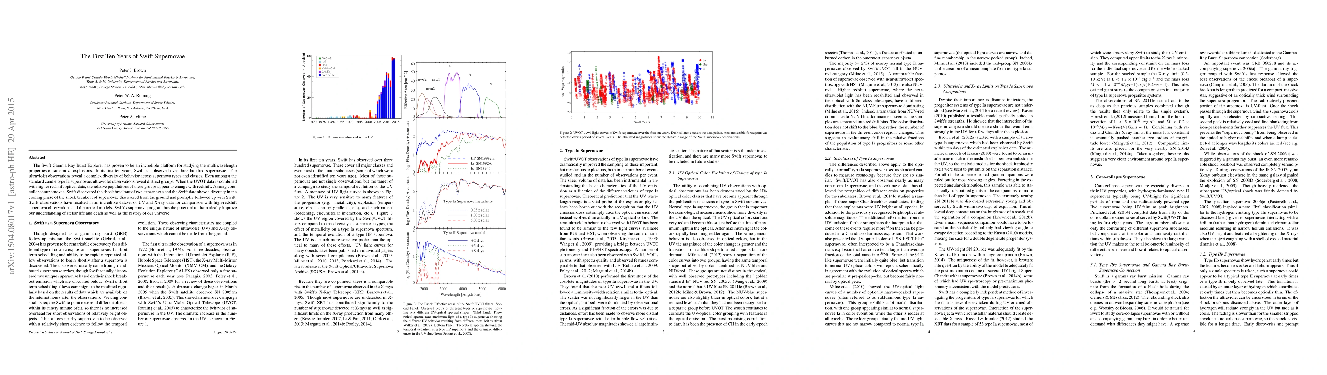 The Swift Gamma Ray Burst Explorer has observed over 300 supernovae in its first decade, revealing diverse ultraviolet behaviors and changes in supernova group populations with redshift, enhancing our understanding of stellar evolution and the universe's history.
