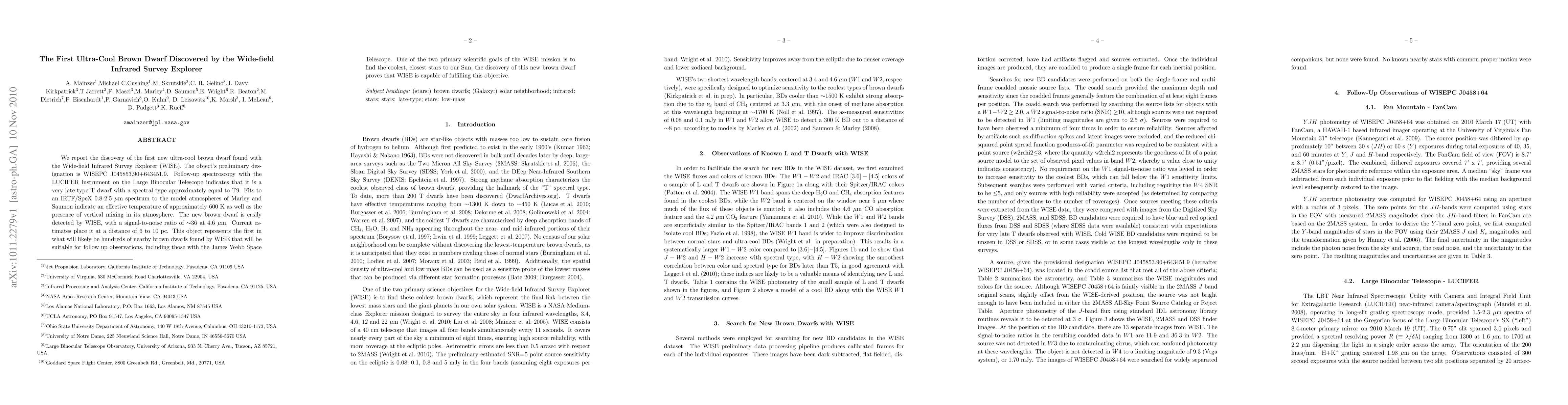 The first ultra-cool brown dwarf, WISEPC J045853.90+643451.9, was discovered by the Wide-field Infrared Survey Explorer (WISE). Follow-up spectroscopy confirms it as a late-type T9 dwarf with an effective temperature of approximately 600 K.