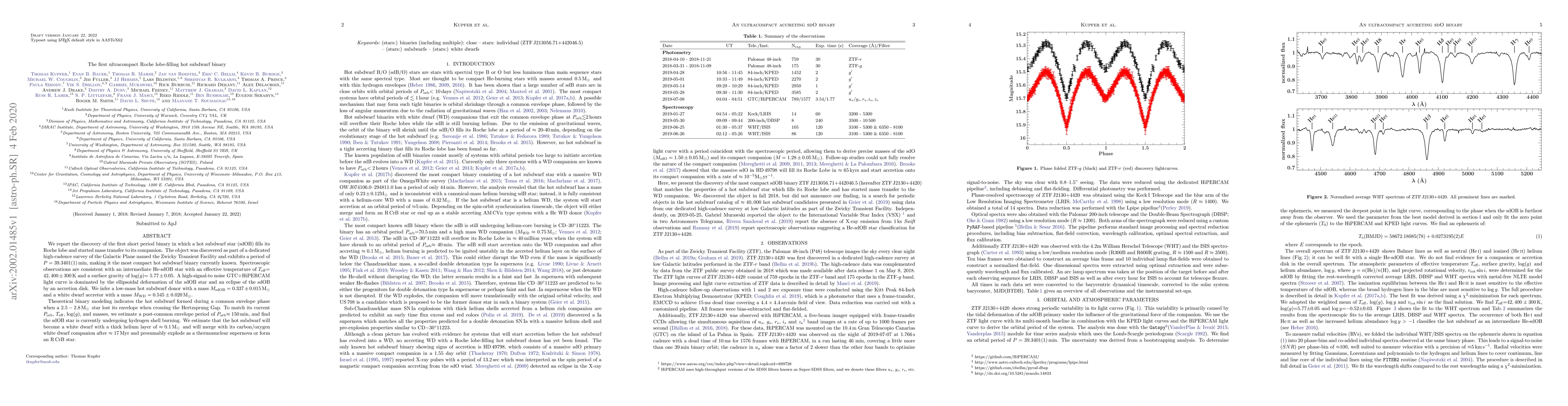 The first ultracompact Roche lobe-filling hot subdwarf binary, discovered via the Zwicky Transient Facility, has a period of 39.34 min and involves a hot subdwarf star undergoing mass transfer to a white dwarf companion. This system is predicted to merge in approximately 17 million years, potentially resulting in a thermonuclear supernova or an R CrB star.