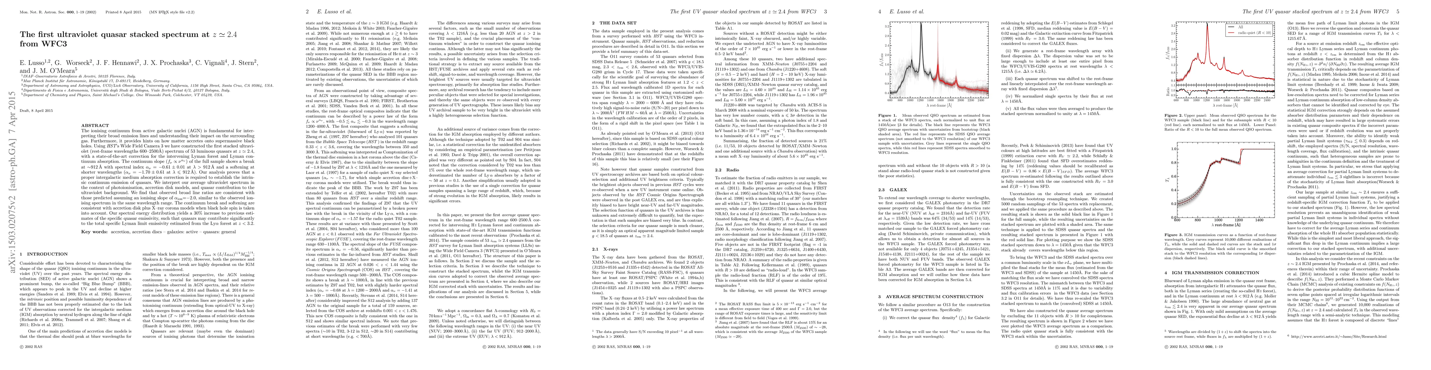 This research constructed the first stacked ultraviolet (600-2500Å) spectrum of 53 luminous quasars at z=2.4 using HST's Wide Field Camera 3, applying state-of-the-art corrections for intervening Lyman forest and continuum absorption.