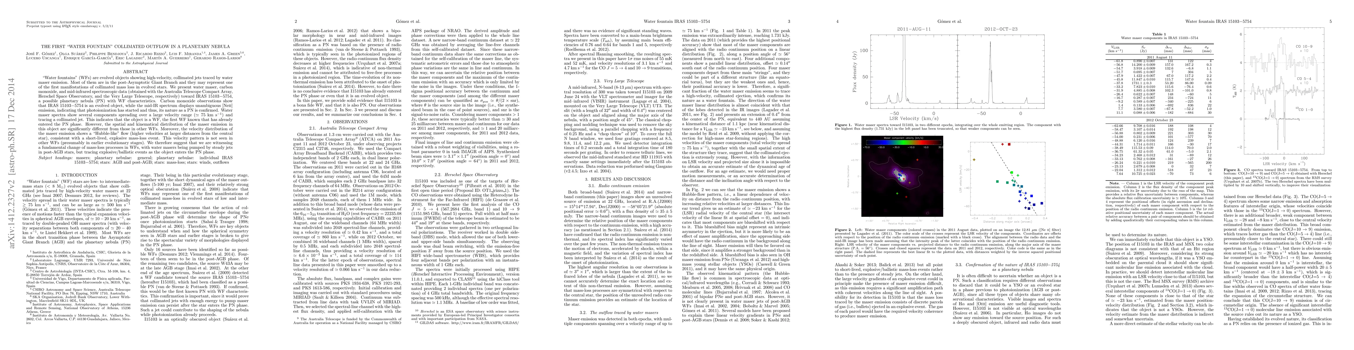 "Water fountains" (WFs) are evolved objects showing high-velocity, collimated jets traced by water maser emission. Most of them are in the post-Asymptotic Giant Branch and they may represent one of the first manifestations of collimated mass loss in evolved stars. We present water maser, carbon monoxide, and mid-infrared spectroscopic data (obtained with the Australia Telescope Compact Array, Herschel Space Observatory, and the Very Large Telescope, respectively) toward IRAS 15103--5754, a possible planetary nebula (PN) with WF characteristics. Carbon monoxide observations show that IRAS 15103-5754 is an evolved object, while the mid-IR spectrum displays unambiguous [NeII] emission, indicating that photoionization has started and thus, its nature as a PN is confirmed. Water maser spectra show several components spreading over a large velocity range ~75 km/s and tracing a collimated jet. This indicates that the object is a WF, the first WF known that has already entered the PN phase. However, the spatial and kinematical distribution of the maser emission in this object are significantly different from those in other WFs. Moreover, the velocity distribution of the maser emission shows a "Hubble-like" flow (higher velocities at larger distances from the central star), consistent with a short-lived, explosive mass-loss event. This velocity pattern is not seen in other WFs (presumably in earlier evolutionary stages). We therefore suggest that we are witnessing a fundamental change of mass-loss processes in WFs, with water masers being pumped by steady jets in post-AGB stars, but tracing explosive/ballistic events as the object enters the PN phase.