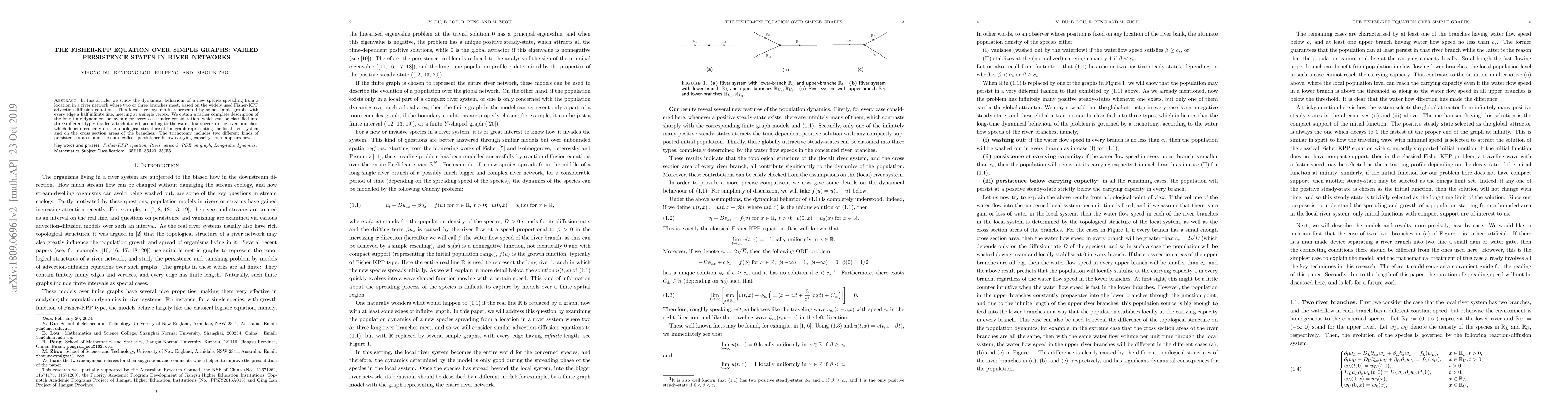 This paper investigates the spread of a new species in river networks using the Fisher-KPP equation over simple graphs, revealing varied persistence states. It identifies a novel "persistence below carrying capacity" phenomenon not seen in models with finite-length edges or simplified networks.
