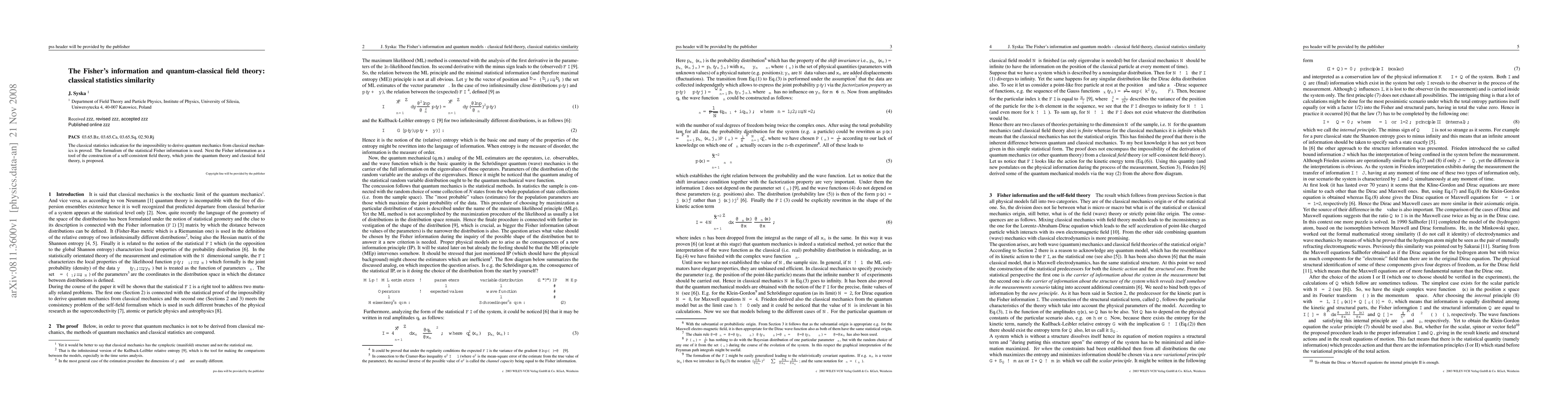 This paper demonstrates that classical statistics precludes deriving quantum mechanics from classical mechanics using Fisher information. It proposes a self-consistent field theory that merges quantum and classical field theories through the formalism of Fisher information.