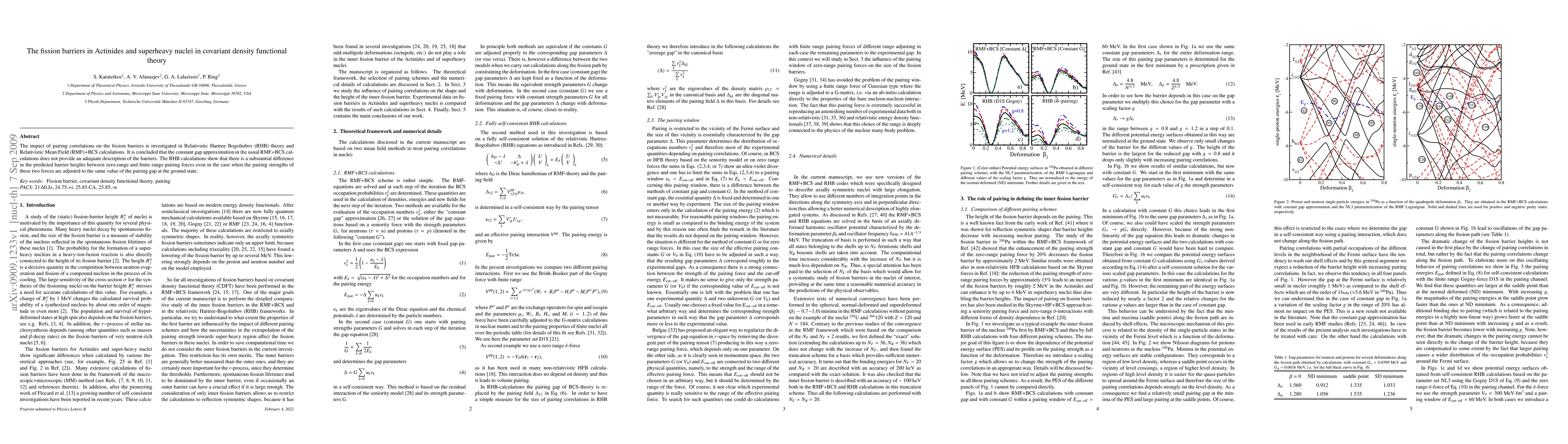 Summary: This study investigates the impact of pairing correlations on fission barriers in Actinides and superheavy nuclei using RHB and RMF+BCS theories. It finds that the constant gap approximation in RMF+BCS is inadequate, while RHB calculations reveal significant differences in barrier heights between zero-range and finite range pairing forces.