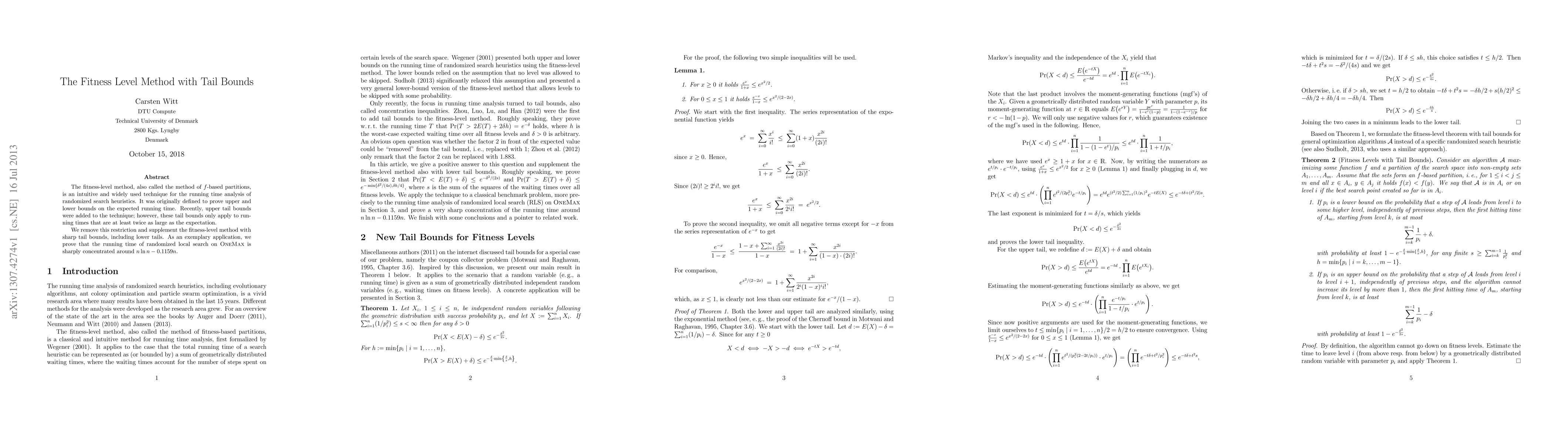 The fitness-level method is enhanced to provide sharp tail bounds for randomized search heuristics, removing previous limitations on running times. This improvement allows for precise concentration around expected values, demonstrated through the analysis of randomized local search on OneMax.