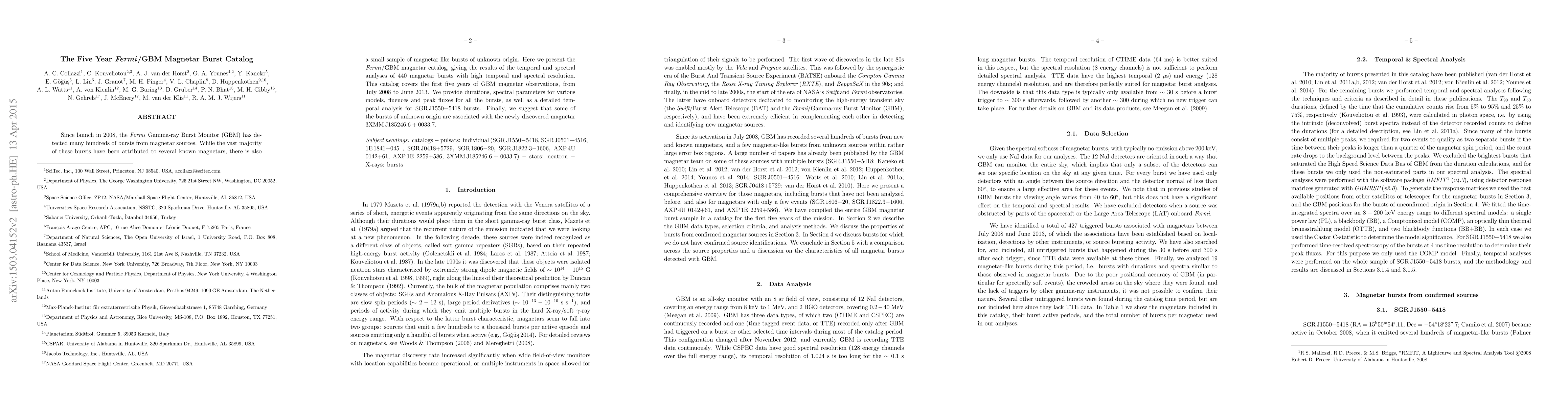 This paper presents a comprehensive five-year catalog of 440 magnetar bursts detected by the Fermi Gamma-ray Burst Monitor (GBM), detailing temporal and spectral analyses, and suggests some unknown origin bursts may be linked to the newly discovered magnetar 3XMM J185246.6+0033.7.