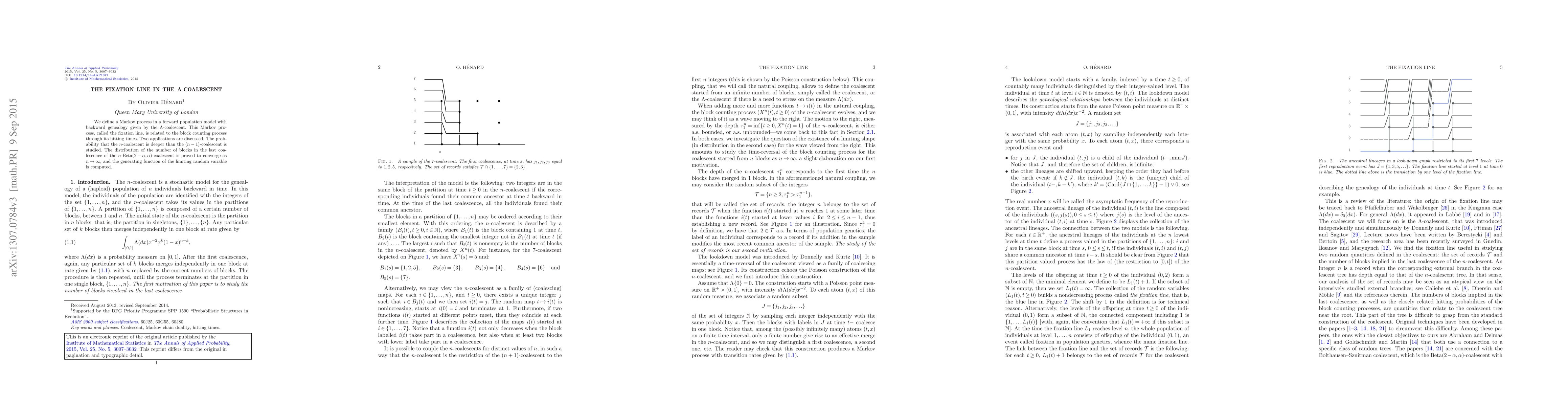 This paper introduces the fixation line, a Markov process in the $\Lambda$-coalescent model, and explores its connection to block counting processes. It studies the probability of deeper coalescence levels and proves the convergence of the number of blocks in the last coalescence, computing its generating function.